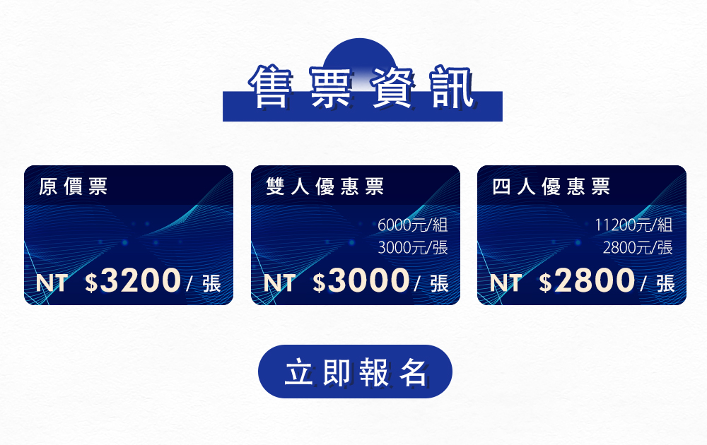 購票完成代表您已同意本公司使用者條款與隱私權聲明:報名此活動的同時,必須同時同意活動期間所拍攝到參加者相片肖像,做為後續花絮報導,集團行銷或社群露出宣傳使用。