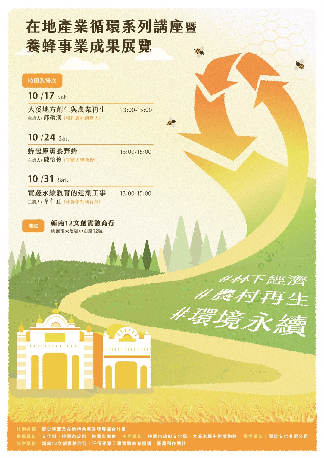 同時也會在講座現場舉辦本計畫「地域參與式養蜂事業體」執行的成果展覽,邀請所有對於循環永續、環境議題有興趣的朋友參加。
