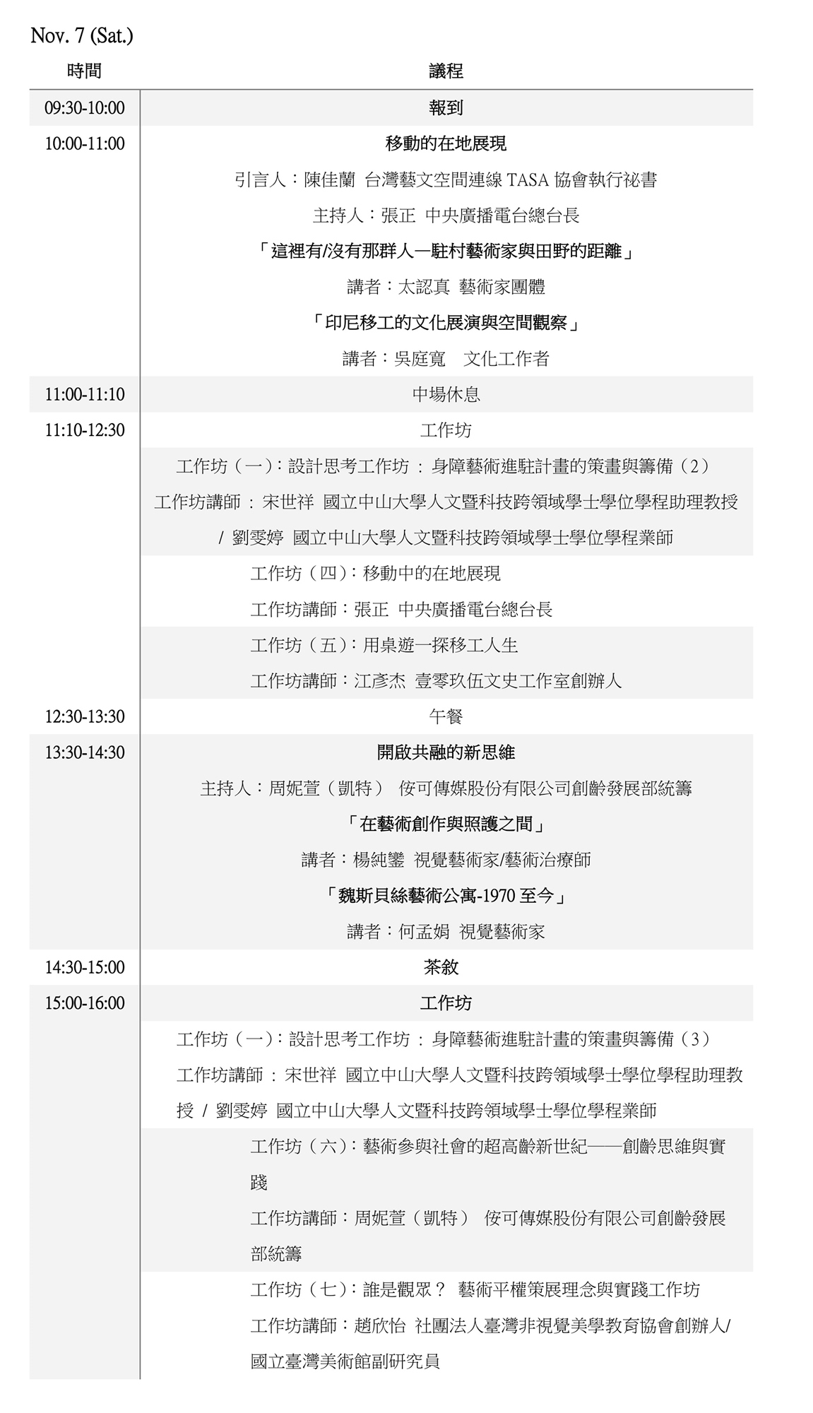 11月7日 下午場 15:00 - 16:00