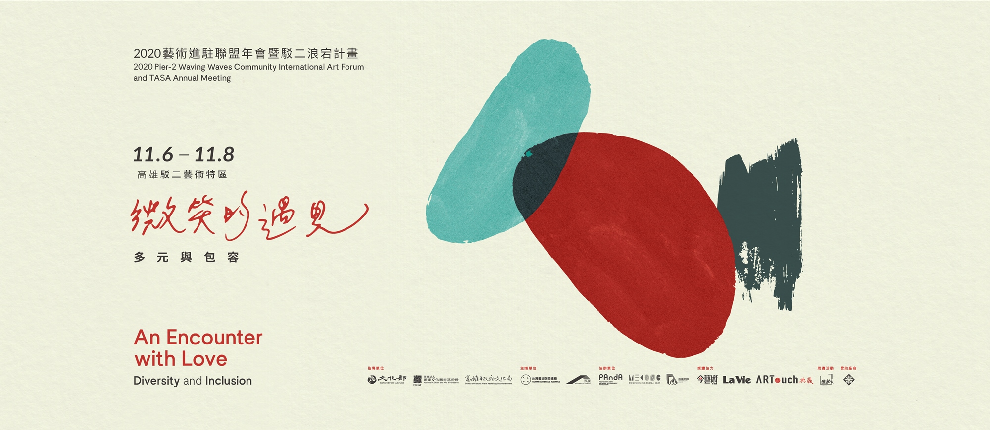 2020年台灣藝術村聯盟年會及駁二浪宕計畫以「微笑的遇見」為題,將邀請台灣與國際藝術進駐及平台的營運者以Diversity『多元』& Inclusion『包容』(D&I),試以透過策略、方針來打造出多元共融的文化。當我們在說到 Diversity & Inclusion 時,談的並不是如何去「包容」其他人,而是在創作的過程、藝術進駐機構及藝術空間的環境中,創造出讓每個人都能自在融入的環境,也就是「共融」。在許多現實的層面下,D&I 策略的過程常常淪為例行公事,只是逐條確認是否完成項目而非其具體效益。然而想要透過 D&I 促成改變,勢必建立以結果為導向的實際行動,將藝術的多樣性概念帶進創作的思考及產出。