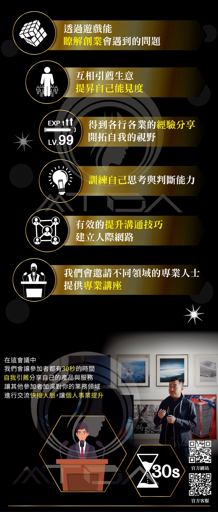 請務必理解我們並非單純的活動,我們非常重視您的時間與承諾,我們現場協助您,對接產業菁英,您的出席代表著商譽、品牌、信用。