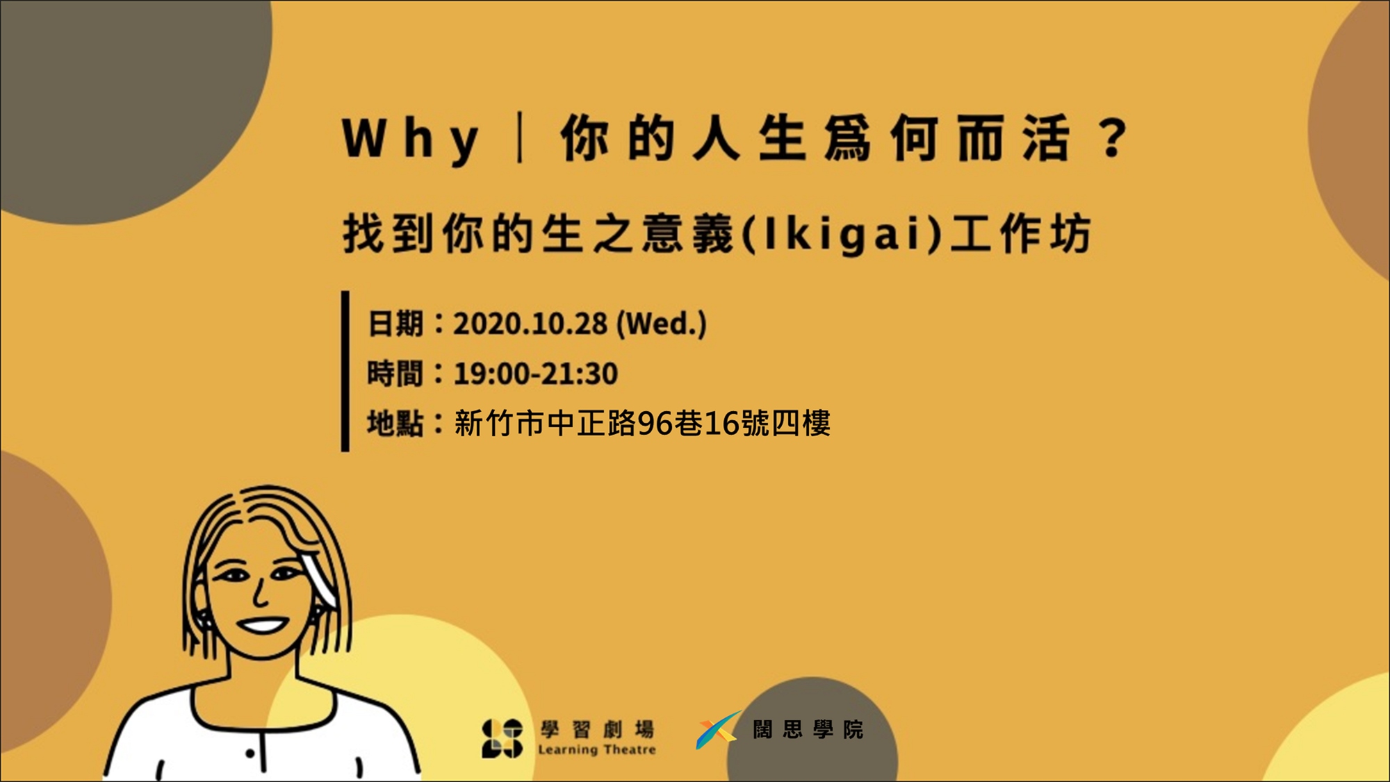本次工作坊將參考「生之意義(lkigai)」理論,源自日語的「存在的理由」與找到你的為什麼手法,透過分組訪談與討論,協助參與者回顧過去人生,找到屬於自己的此生活著的意義。