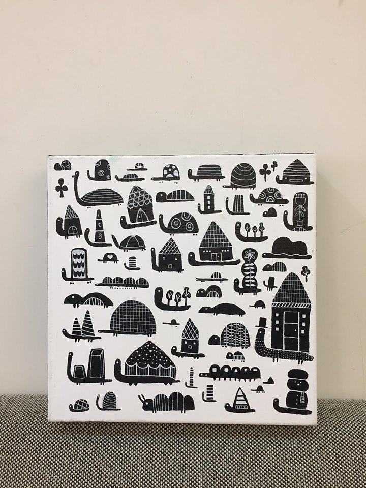 1 | 12/06(日) 下午4:00-6:00 | 1.白色牛奶筆,白紙A4一張 2.水彩筆2支一粗一細 | 1.分享講師如何發想的訣竅與繪製的過程 2.經分享後,換學員先於白紙用鉛筆練習繪製 圓形/方形/橢圓/不規則形的素材裝飾(點線面的運用) 3.開始嘗試直接畫在畫布上 |