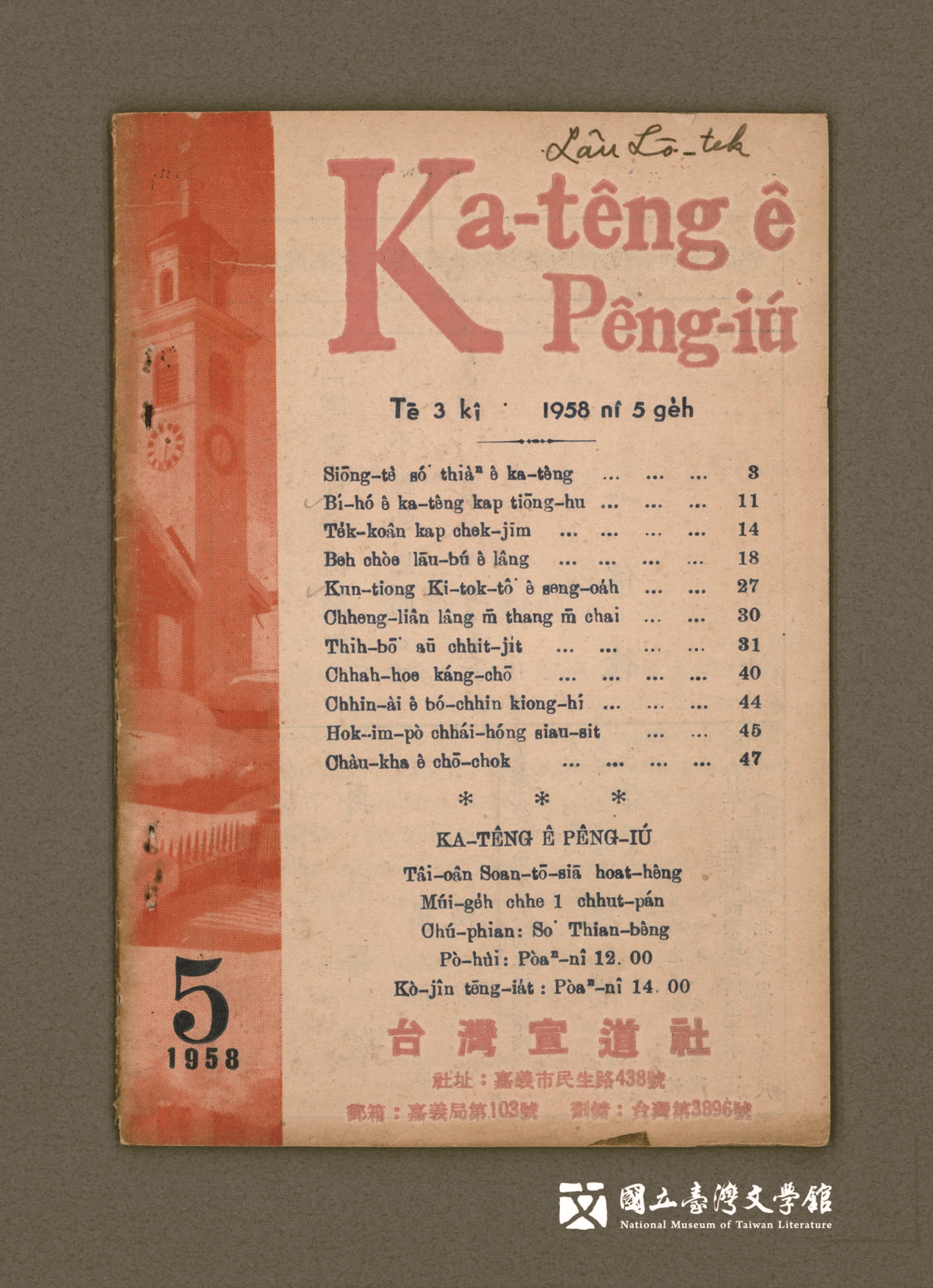 國立臺灣文學館「臺灣白話字文學資料蒐集整理計畫」收錄包括《家庭的朋友》(Ka-têng ê Pêng-iú)等800多件白話字文物,並針對館藏白話字文物進行文物保護及數位化。預計2020年底完成文物詮釋,資料將導入本館文物典藏系統。館藏白話字文物並入選「第二屆世界記憶國家名錄」,肯定白話字作為臺灣多元集體記憶的歷史定位。 本館文物典藏系統另有數位化的「白話字資料庫」,包括「台語文數位典藏資料庫」、「白話字數位典藏博物館」、「台語文學發展史料資料庫」及「台灣民間說唱文學歌仔冊資料庫」供民眾檢索利用。