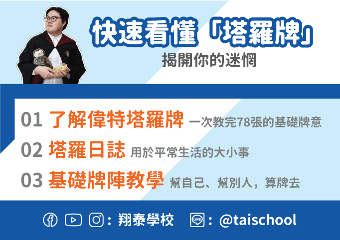 本課程將幫助學生簡單的了解「偉特塔羅牌」,並且幫忙認識共類型的塔羅基礎,這將會是你成為占卜師的上手絕佳機會。