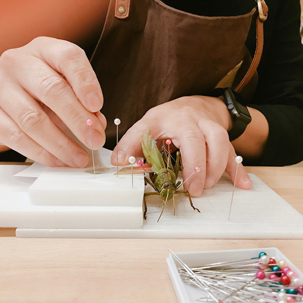 昆蟲,是世界上最繁盛的動物,牠們扮演顯花植物的授粉者、自然界的分解者,更是多種動物的食物來源。昆蟲維繫了生態系中食物鏈和食物網的穩定,在生態中扮演著關鍵的角色。 透過製作昆蟲標本,可從過程中了解昆蟲的自然樣貌、生物分類、物種特性,並學習生態保育。帶著尊重的心情,將自然界中最重要的多樣性生物製作成美麗的藝術標本!延續昆蟲生命之美。課程過程沒有艱深的技巧,運用基礎的軟化、固定與烘乾…等方式操作,非常適合初次嘗試標本製作的朋友參加。