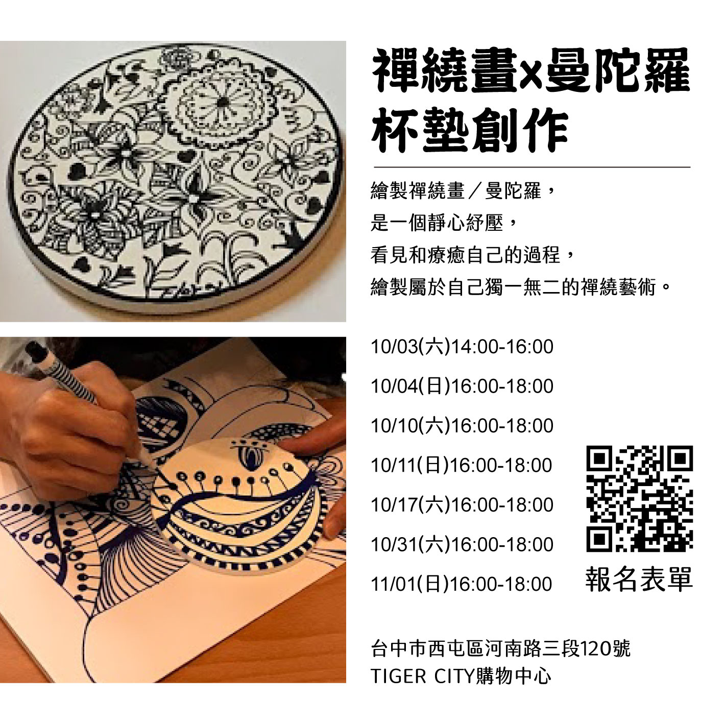 【四葉小學堂-10/9-10/10動物禪繞畫杯墊創作】