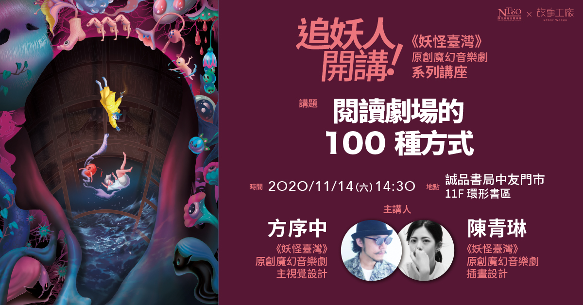 主講人:方序中(《妖怪臺灣》原創魔幻音樂劇主視覺設計)、陳青琳(《妖怪臺灣》原創魔幻音樂劇插畫設計)