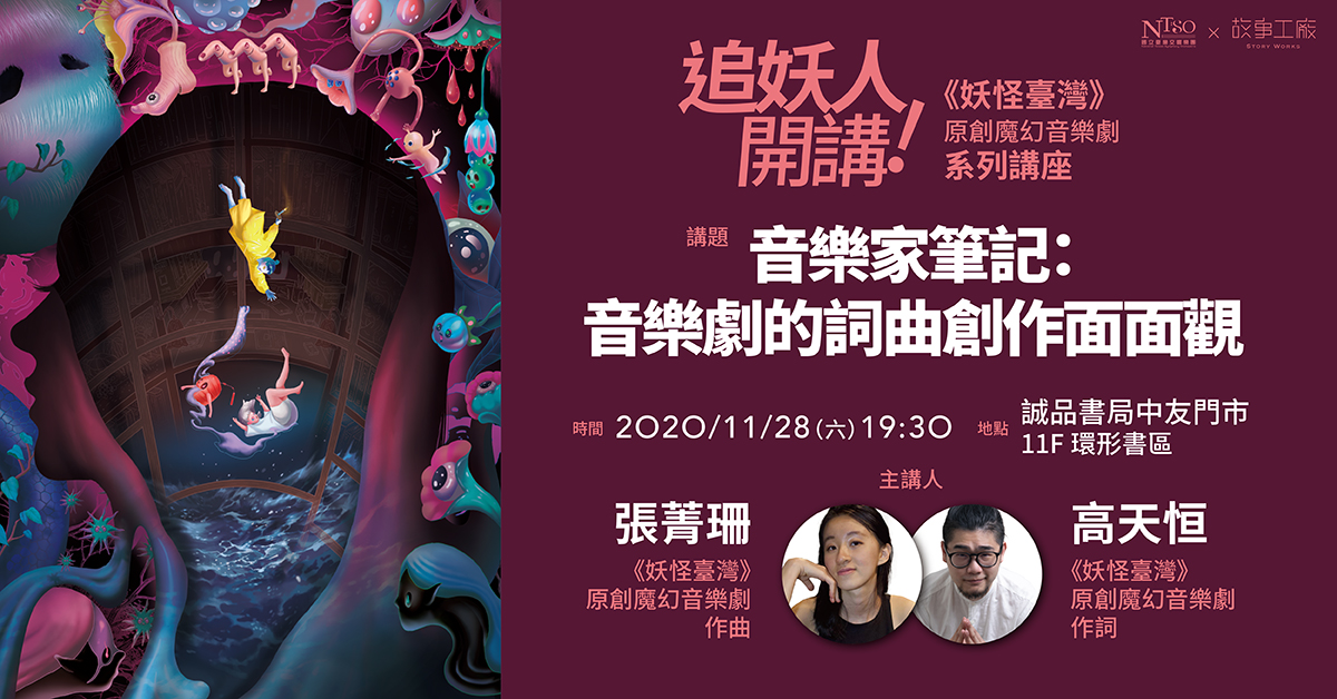主講人:張菁珊(《妖怪臺灣》原創魔幻音樂劇作曲)、高天恒(《妖怪臺灣》原創魔幻音樂劇作詞)