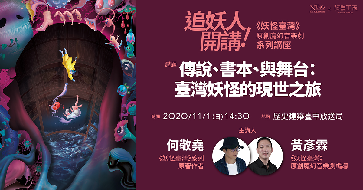 主講人:黃彥霖(《妖怪臺灣》原創魔幻音樂劇編導)、何敬堯(《妖怪臺灣》系列原著作者)