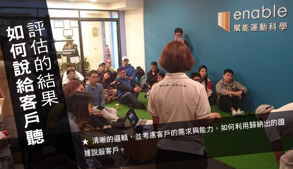 - 評估的結果如何說給客戶聽,讓他真的能了解問題所在,並選擇透過運動來改善