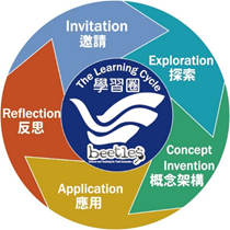本計畫則應用國立臺灣海洋大學與柏克萊加州大學共同合作的學習圈模式進行活動實施,包括活動一開始在邀請階段跟同學說明本周課程學習目的(邀請),再透過議題讓同學發言並在黑板寫下同學想要了解的問題或動手探索(探索);第三階段再由講師提供完整概念(概念建構);第四階段將課程知識應用到生活中(應用);最後一階段則請同學進行反思與回饋。