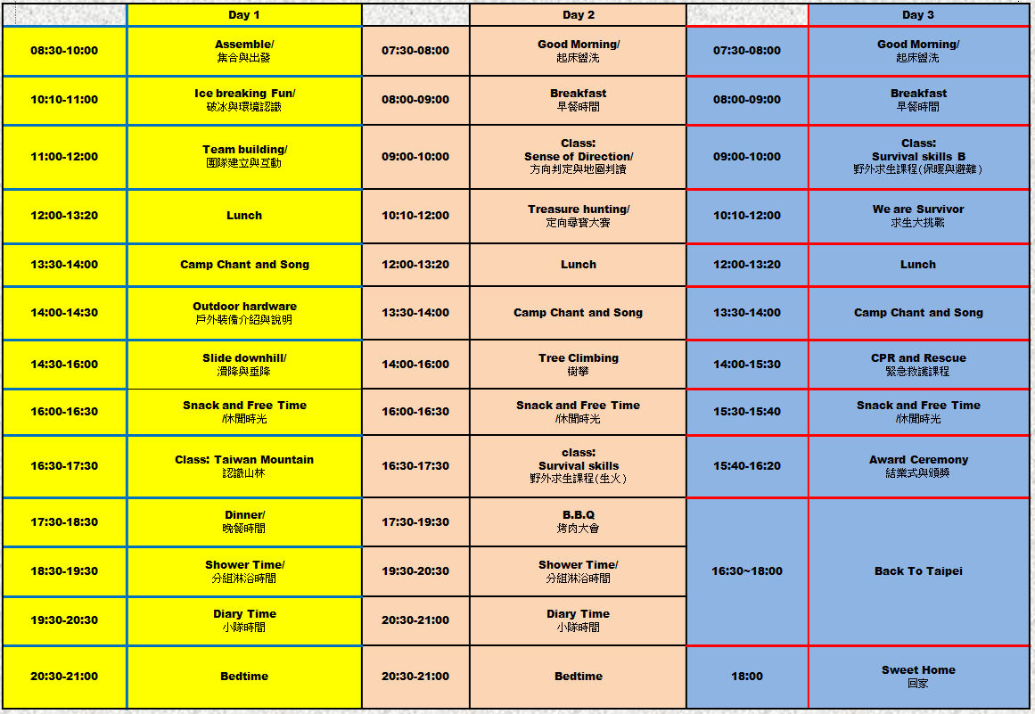 5. 營隊三日生活與課程,皆以全英文進行,專業活動由專業教練帶領。