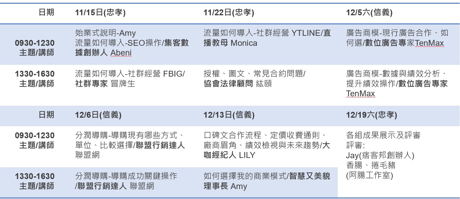 口碑文、分潤導購、廣告成效提升 實戰系列課程(額滿)