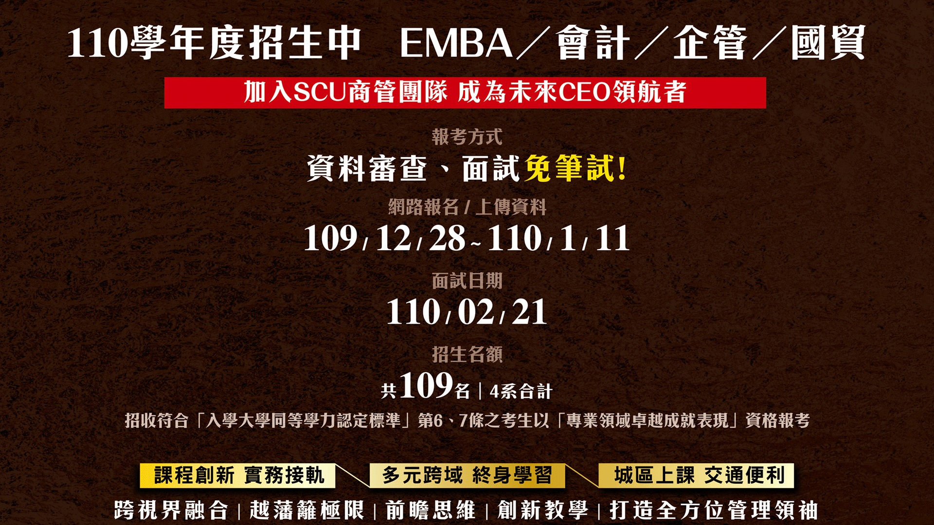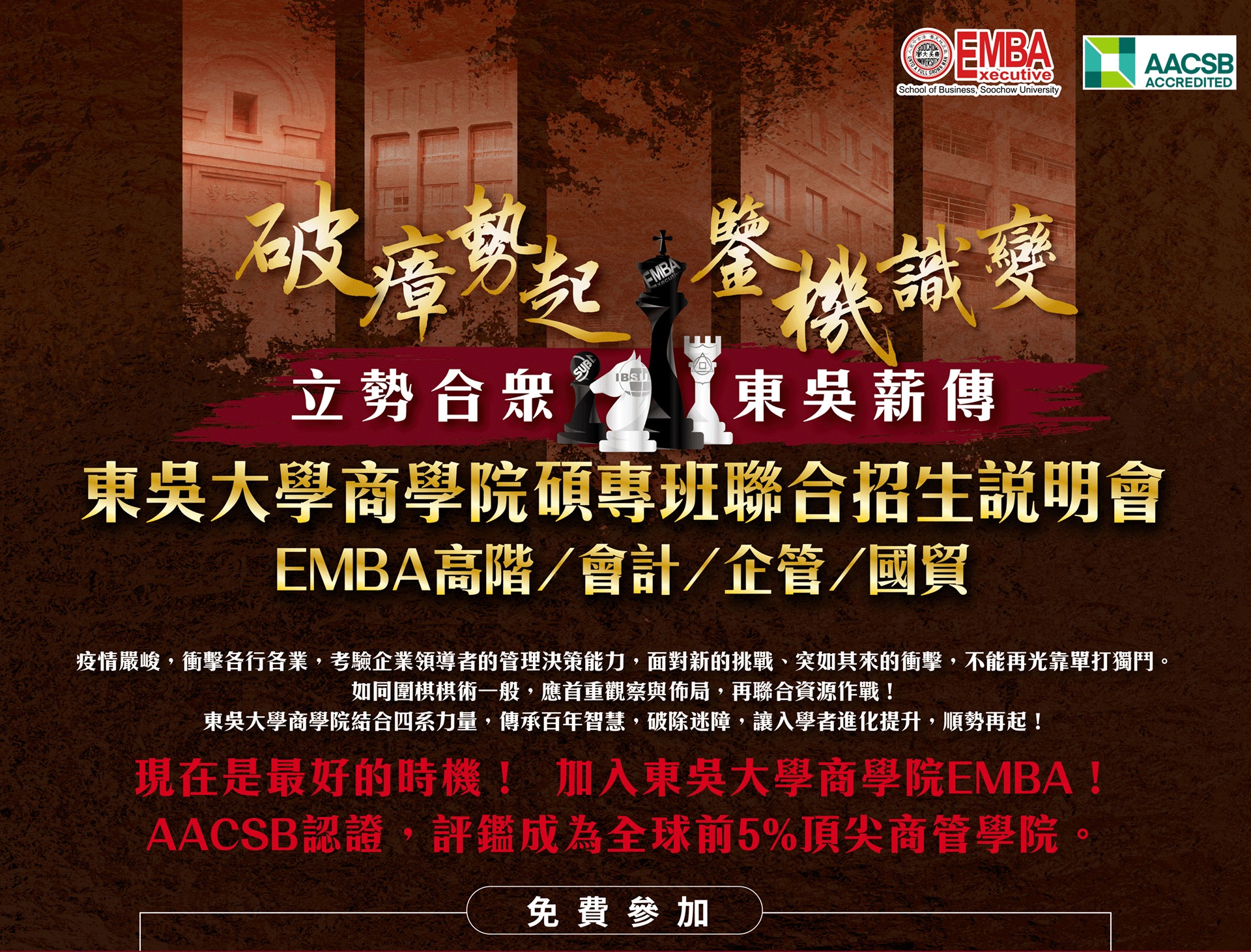 東吳商學院 EMBA高階/會計/企管/國貿 碩專聯合招生說明會