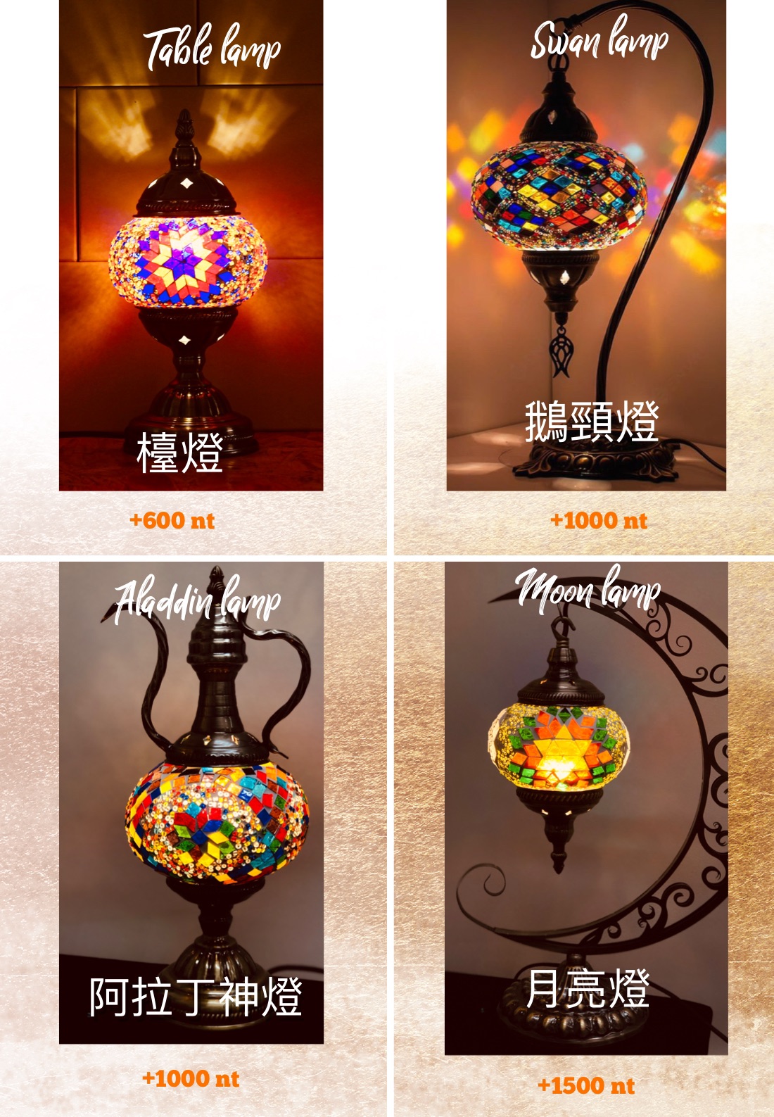 您可以通過12種的手工切割玻璃和珠子製作的作品(土耳其傳統手工燈)照亮您的夜晚。