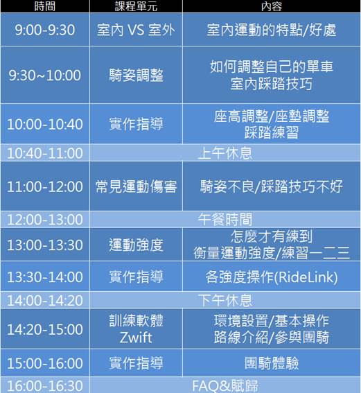 課程透過功率計、智慧訓練台的騎乘操作,透過老師個別指導,調整適合自己的騎乘姿勢,