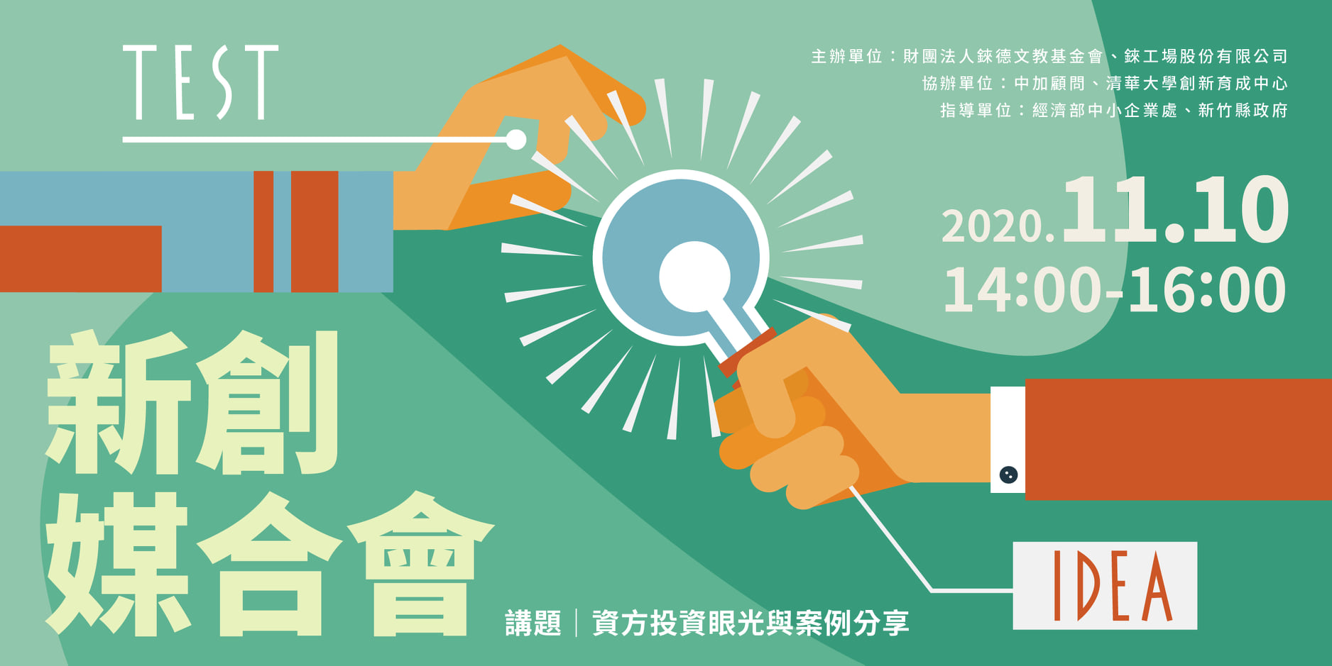 為促進新竹地方新創發展讓創新企業能有快速資源的連結及商機的媒合,此次舉辦【新創媒合會】邀請創投界大師分享資金投資方的案例,活動當中,我們也會邀請投資人一同參與,藉由多方交流合作,互相激發產業新火花,讓我們一起在新創產業中持續成長,歡迎您一同來共襄盛舉!