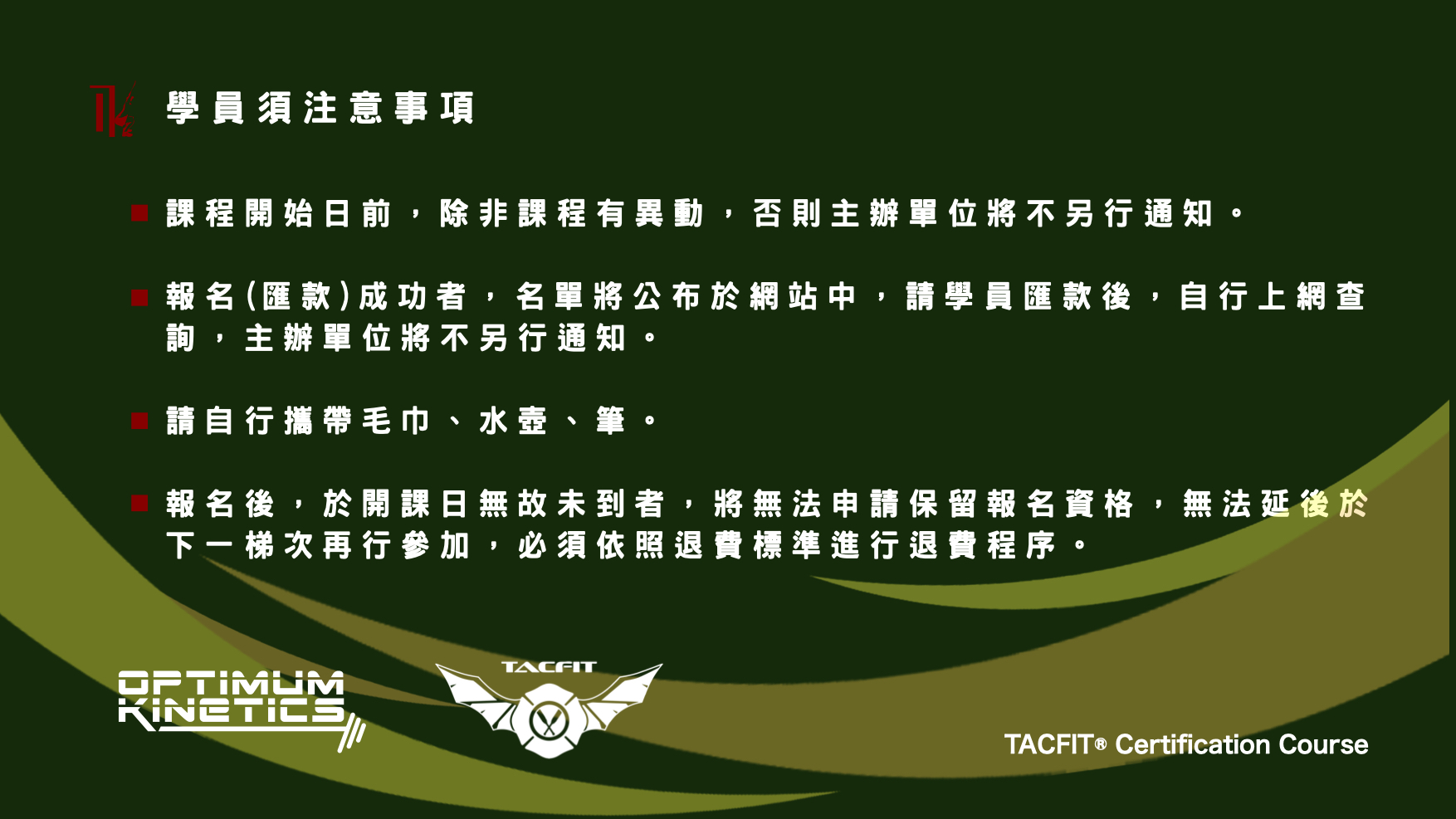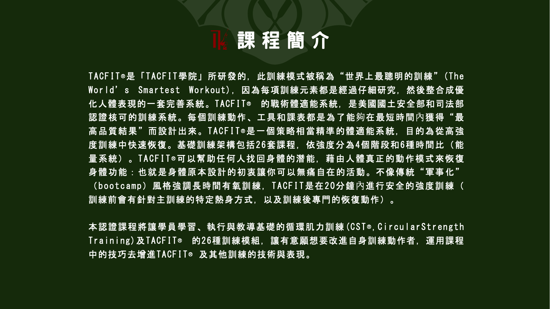 (已取消)Tacfit® 國際認證研習 Tacfit Certification Course