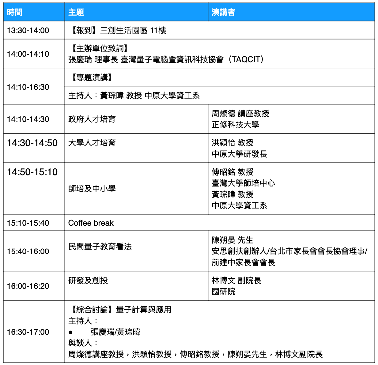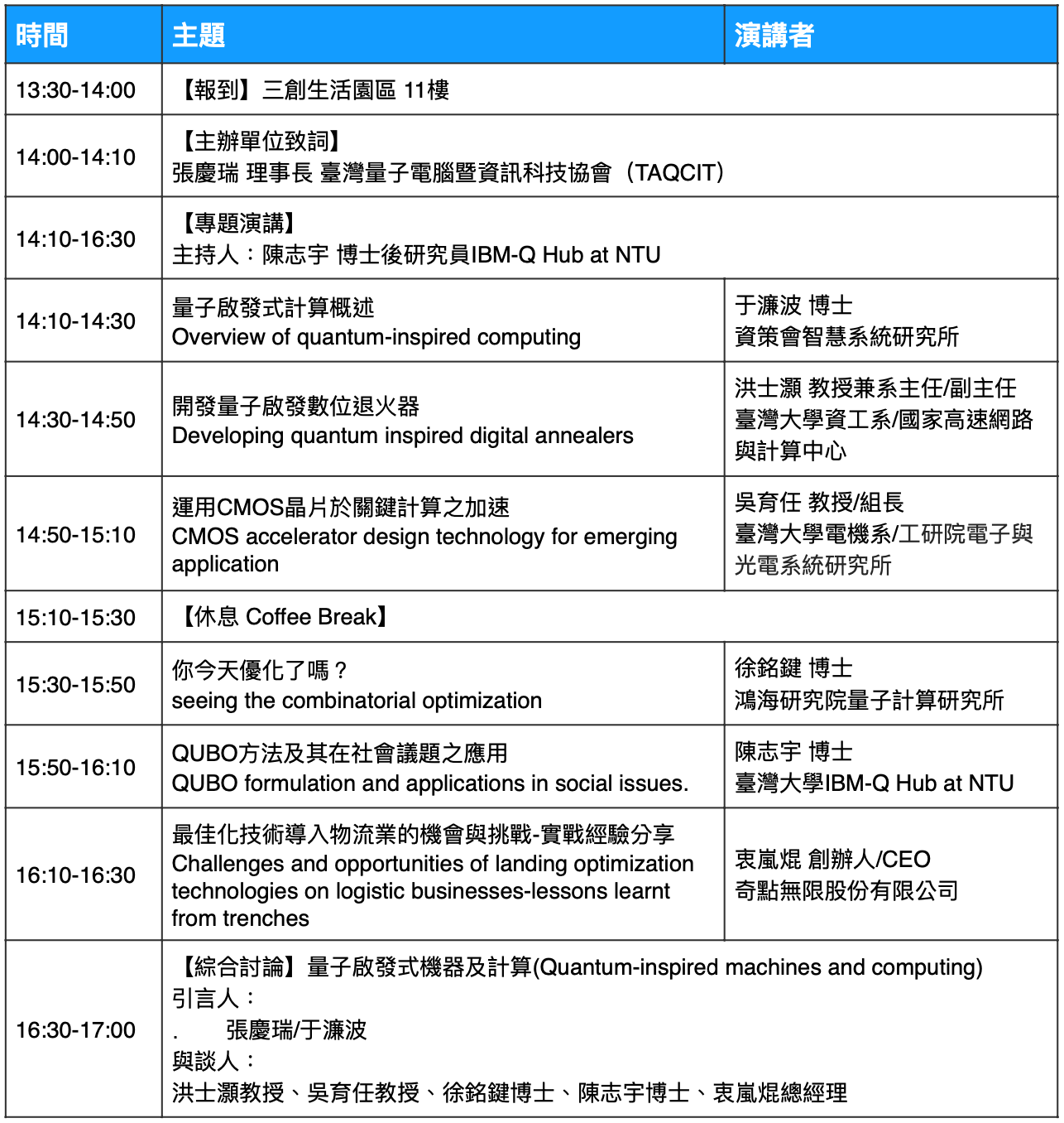 16:30-17:00 | 【綜合討論】量子演算法及應用 | |