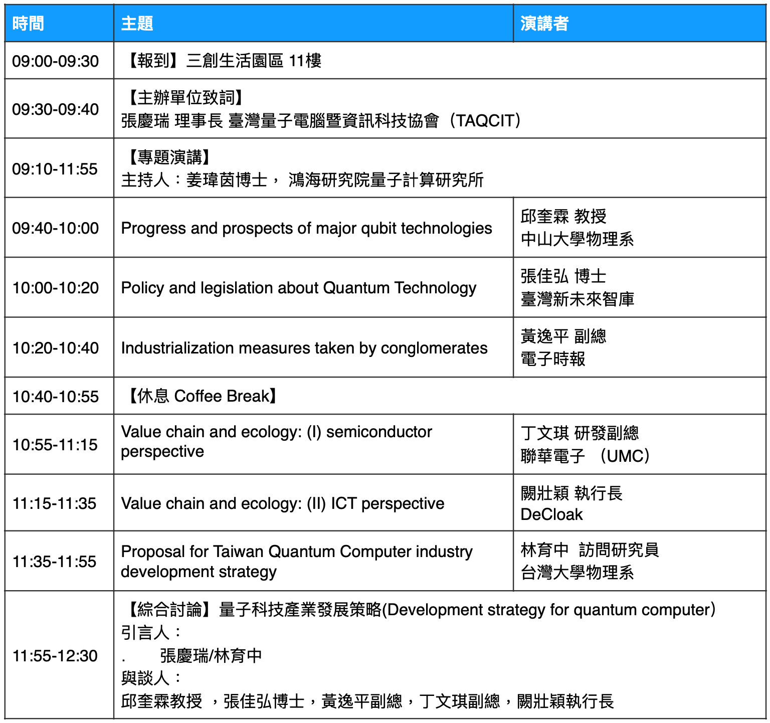 主持人:陳國進 博士 鴻海量子計算研究所 | ||