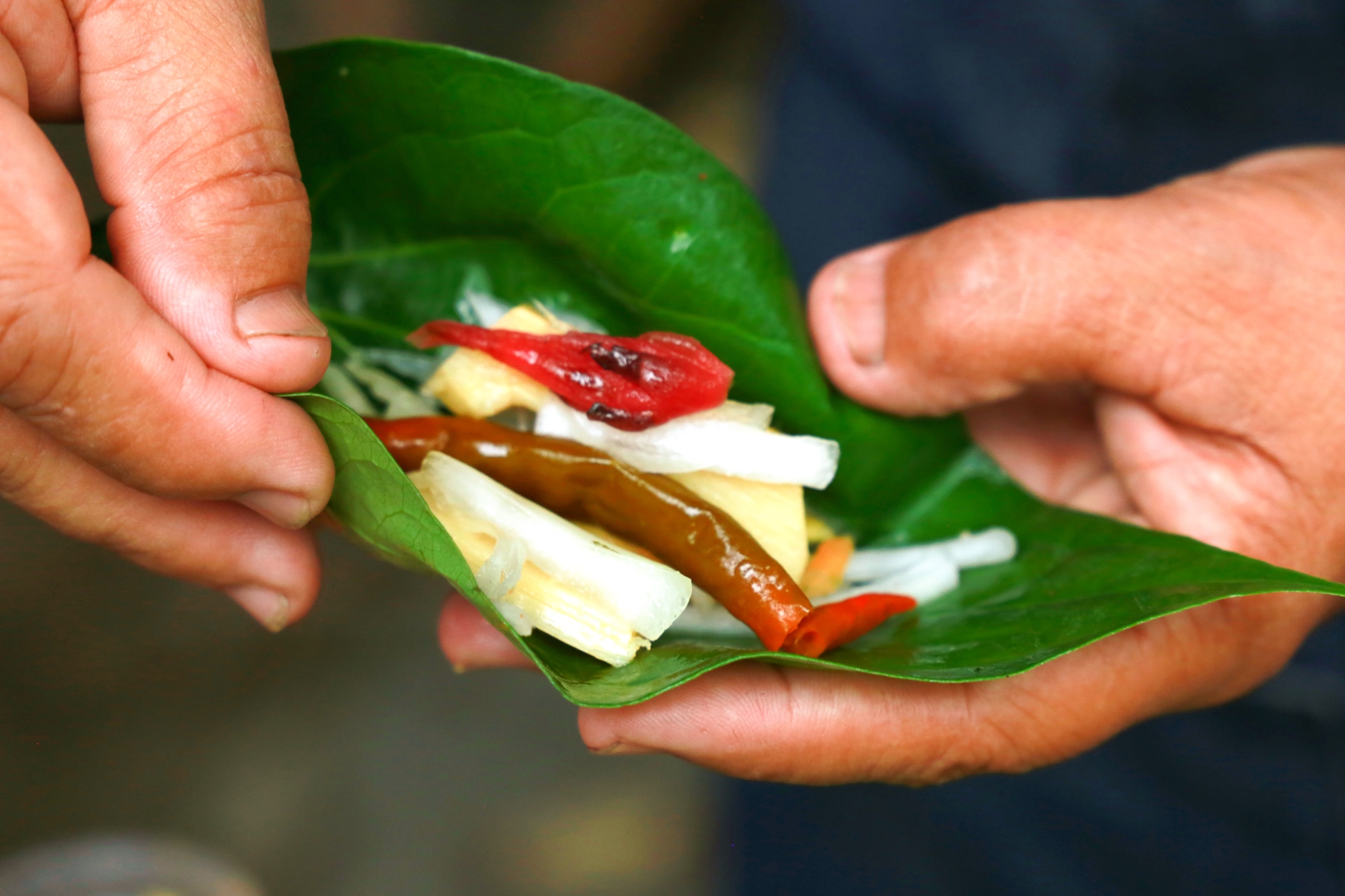 地悶食icibi,意為埋在土裡或用地灶烘烤食物,是最保護地球、自然且兼具環保的無鍋具料理。沿著山路,力元哥採集可食用的野菜,並在適宜地點起火,再用石頭堆疊,靜待一段時間後,享用的是來自南島民族最原汁原味的大地料理。