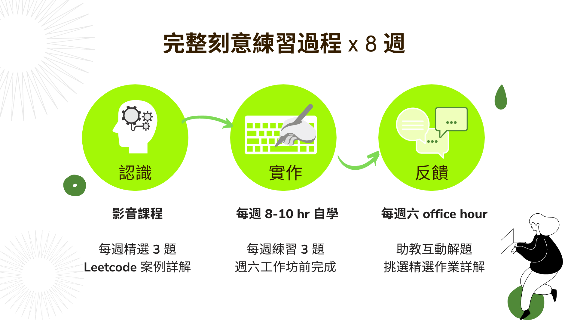 🏆 足夠的練習|八週中,你將透過 AC 獨創「認識、實作、反饋」學習法 紮實建立解題手感