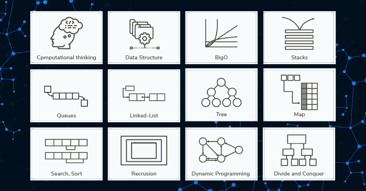 - 完整學習常見 12 個技術概念(演算法、資料結構、演算策略等)
