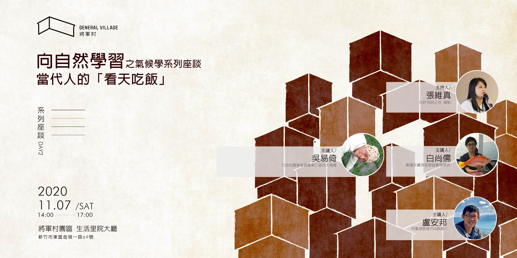 本講座以「氣候」為核心,探討氣候變遷與台灣農業耕作與漁業捕撈、消費的關係,以及作為當代的消費者,如何支持永續,友善大地與海洋。