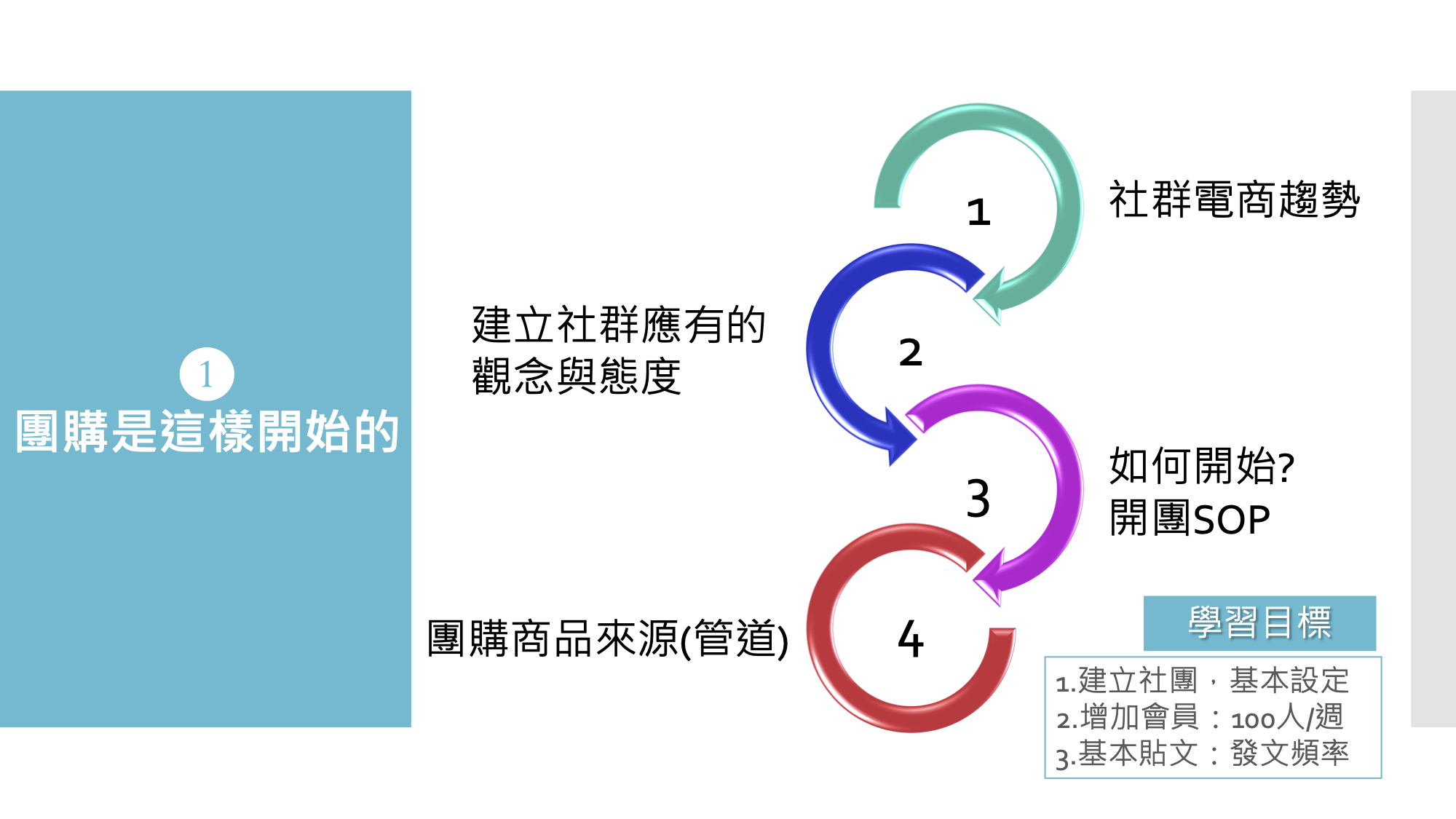 本次課程,邀請到Shopping99共同創辦人彭思齊,讓想要創業或是數位轉型,卻不知道如何開始的你,從選品與訂價開始入手,6小時的電商社群計畫,了解社群電商經營模式,依照市場需求調整,讓你的品牌識別度大增,有爆品、報單的機會出現!