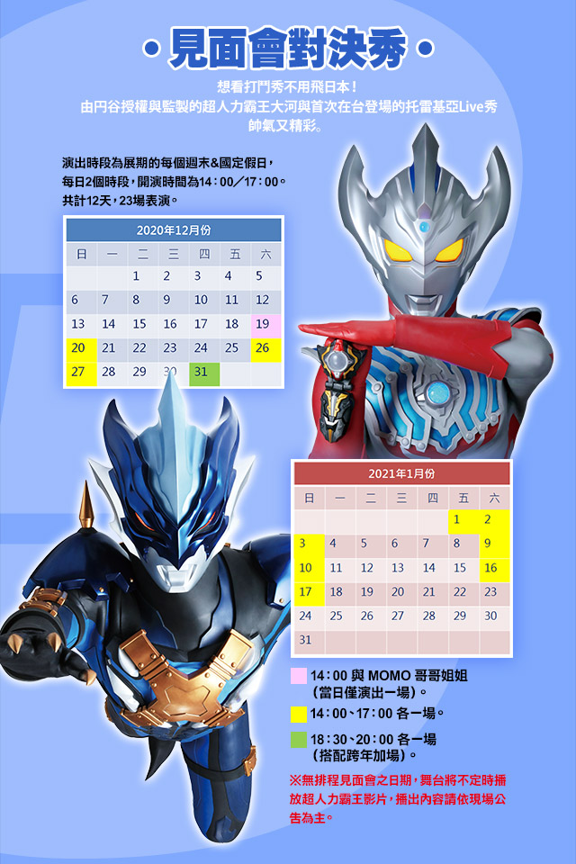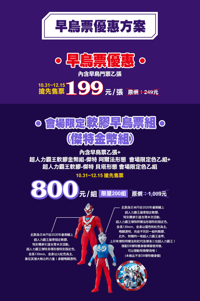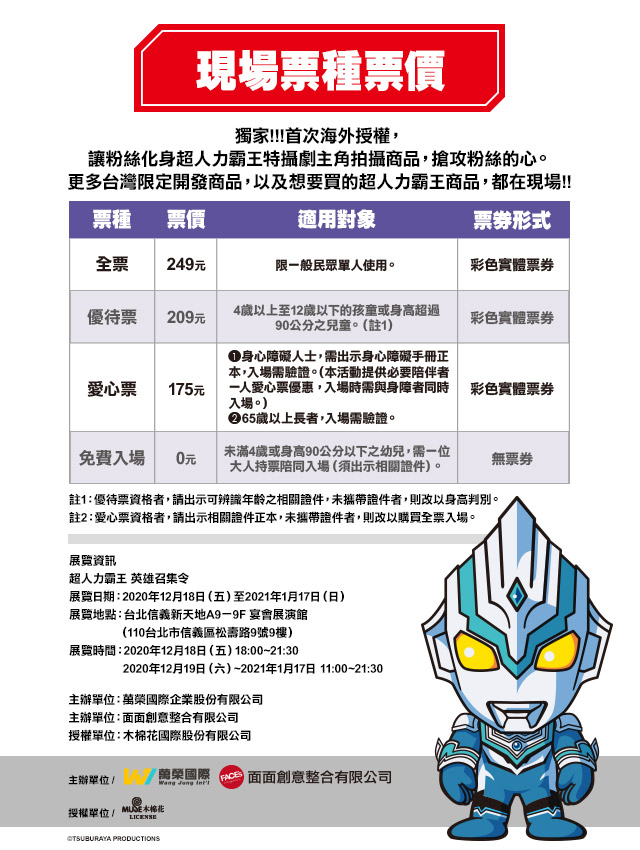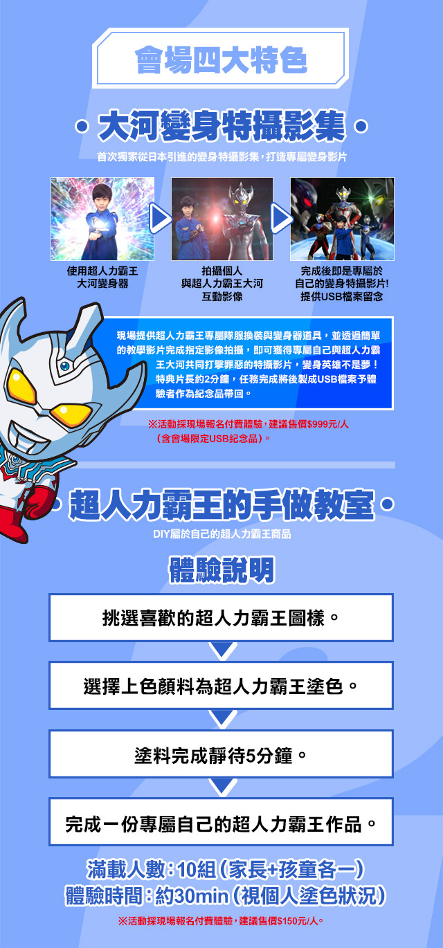 6. 展覽營業時間及規定若有異動,請依現場或【超人力霸王】官方粉絲團公告為準,上述事項若有未盡事宜,主辦單位保留活動之解釋權利。