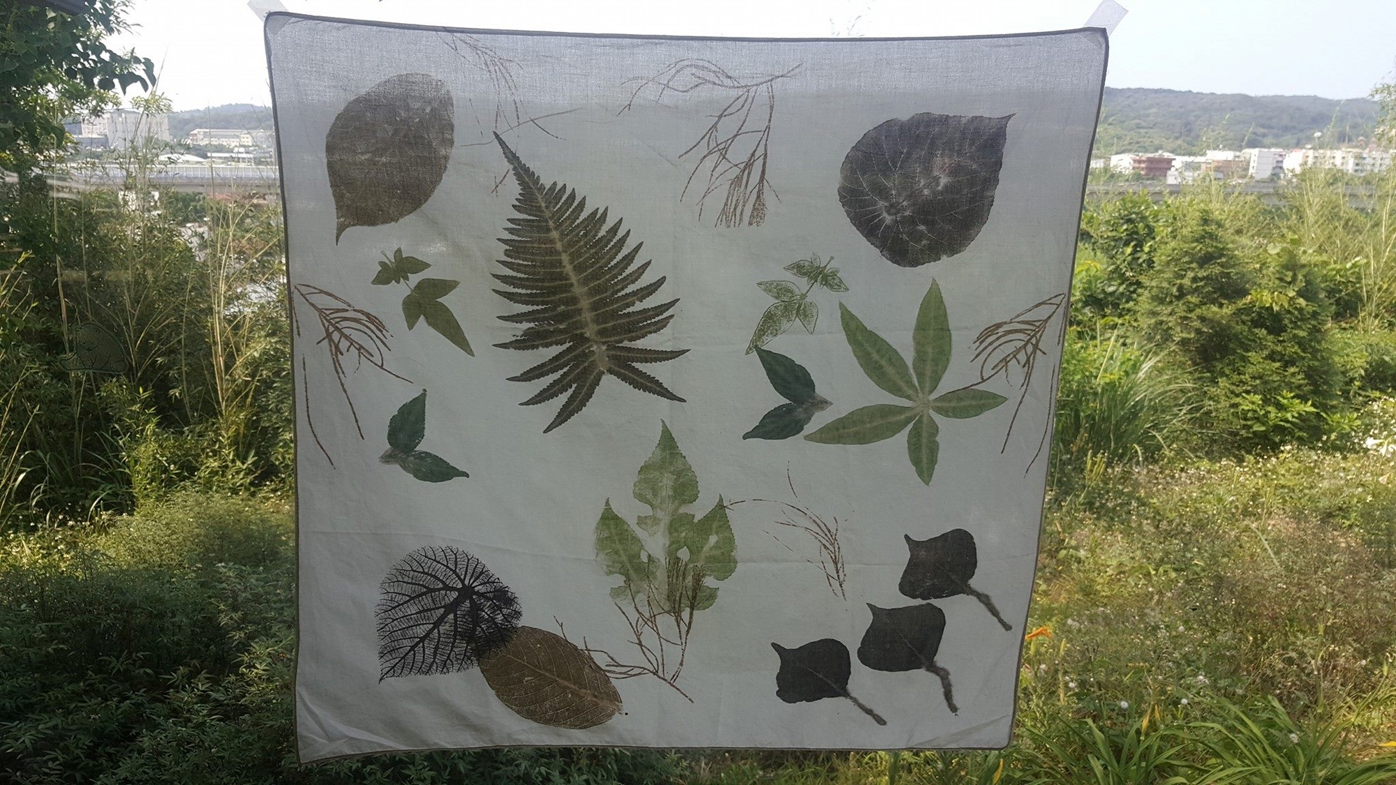 在接觸香草第七年開始,想要將香草除了料理、泡茶、擺飾等運用中,延伸出更多的意義與價值,因此開始嘗試讓香草停留與日常中,所以開始創作香草植物的藝術—槌染,透過雙手親自將香草的生命之液拓染在胚布之上,過程中感受香草揮發出的氣味與薰陶。