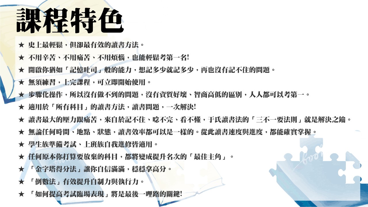 上課時將使用螢光筆,請出席的學員記得帶上螢光筆喔!