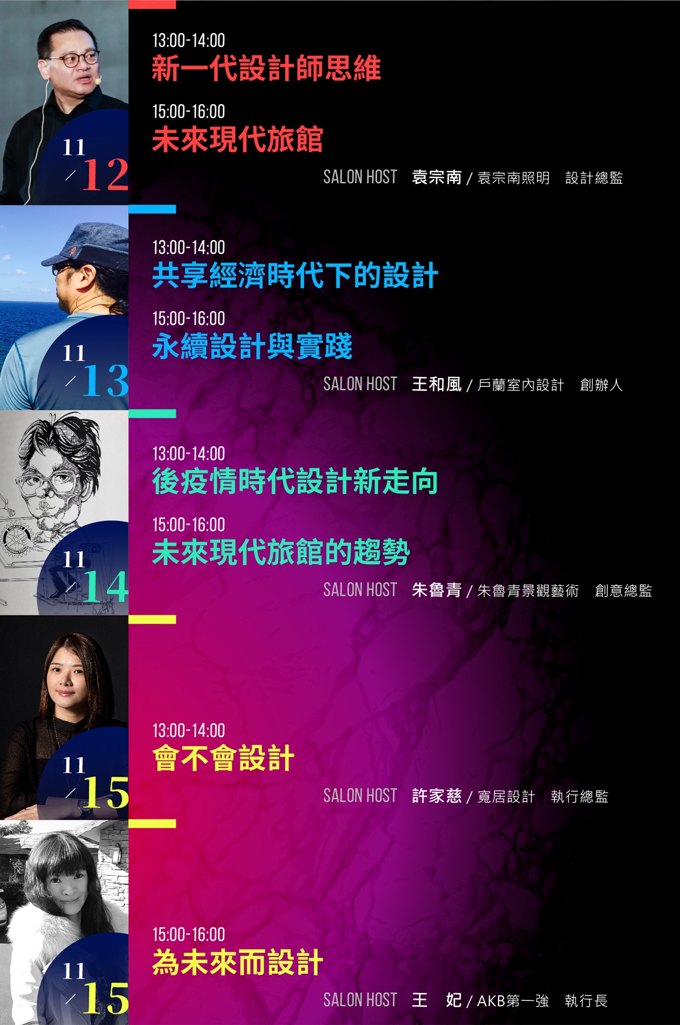 薈設計群沙龍與談人員為隨機與會,可遇不可求,到底會與哪位大師世紀相會呢 ?