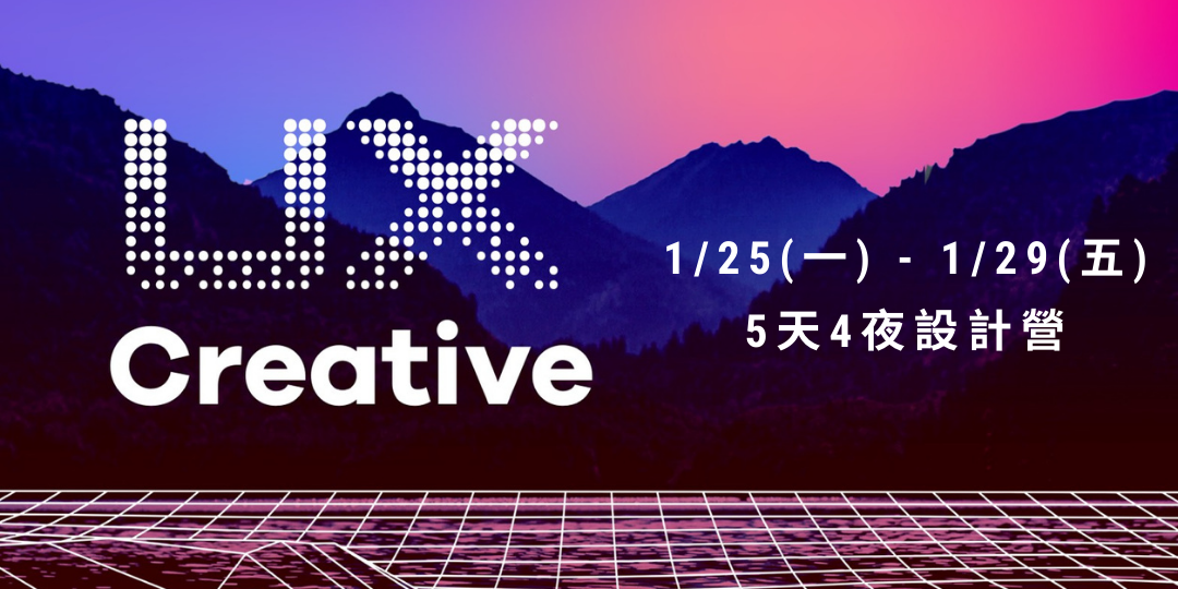 「UX CREATIVE」是空間美學2021/1/25(一)-1/29(五)舉辦的五天四夜的營隊。廣邀6位跨領域業界講師,帶領業界專題模擬,探索3大學群,範圍涵蓋設計、藝術、科技、自媒體領域。一期一會的專題式教學,結合藝術裝置與數位互動的設計,帶你求廣,求深,求透,提前了解未來職涯的可能性。