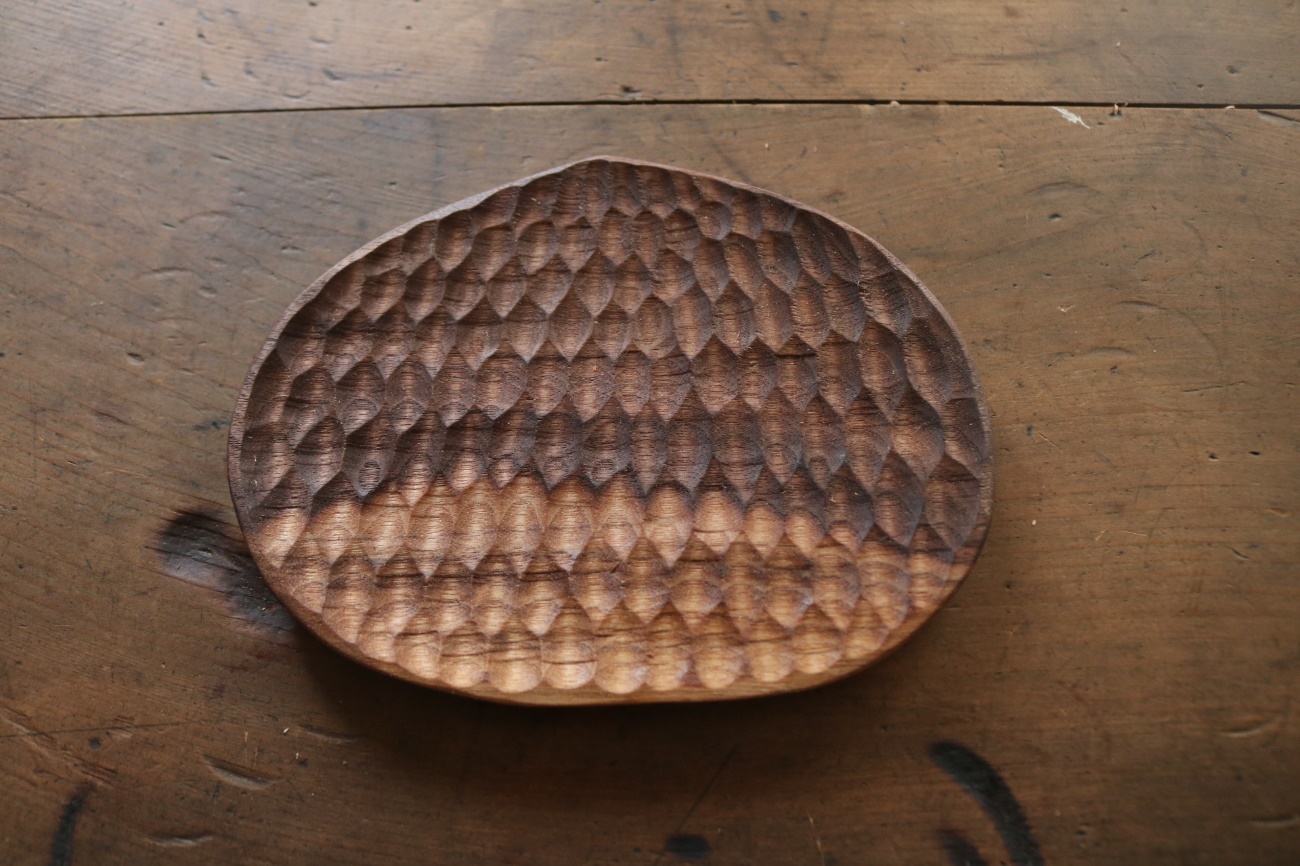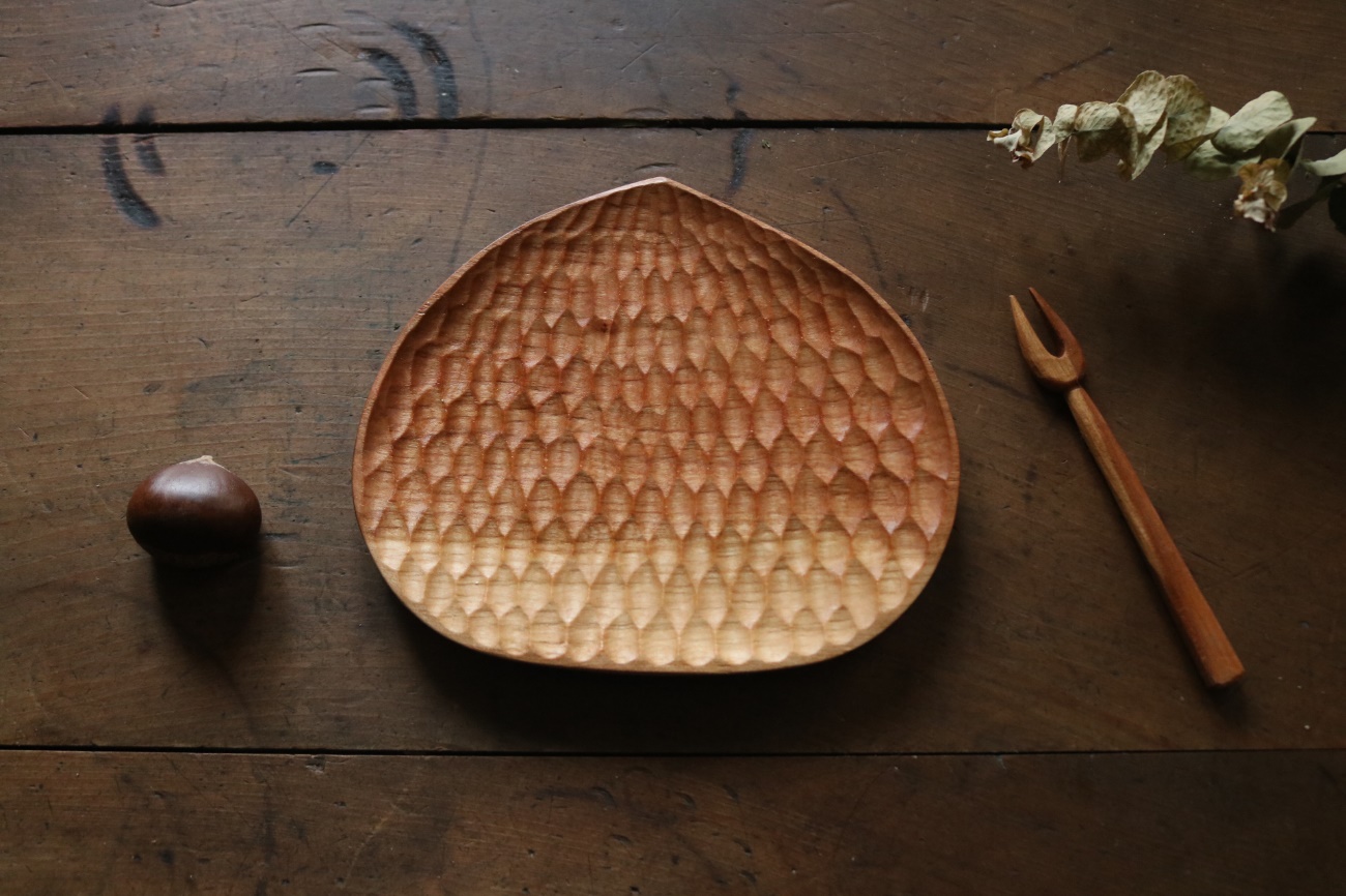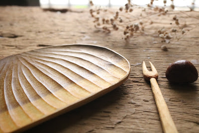 運用多項手刻技巧,製成細緻、實用又可愛的栗子木盤。