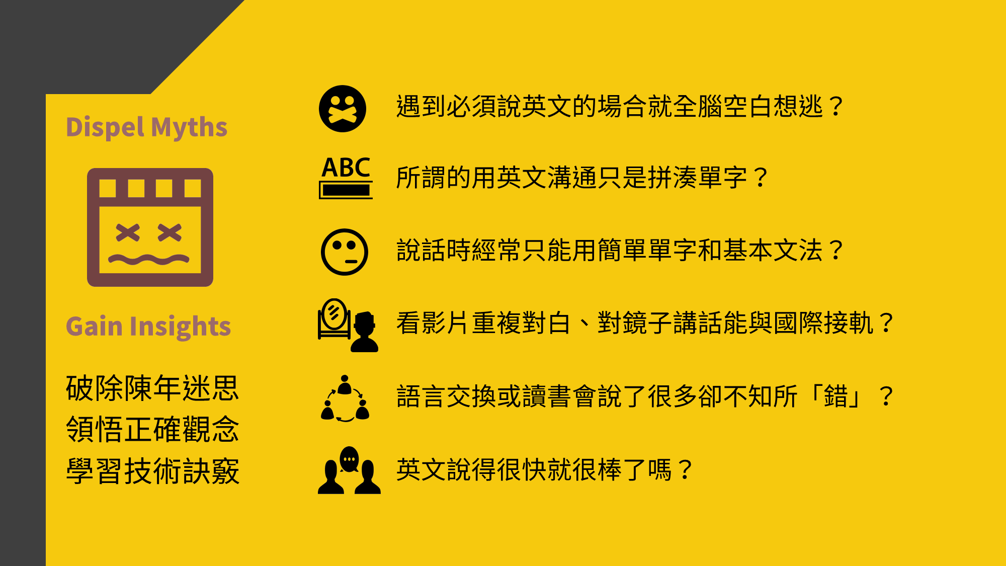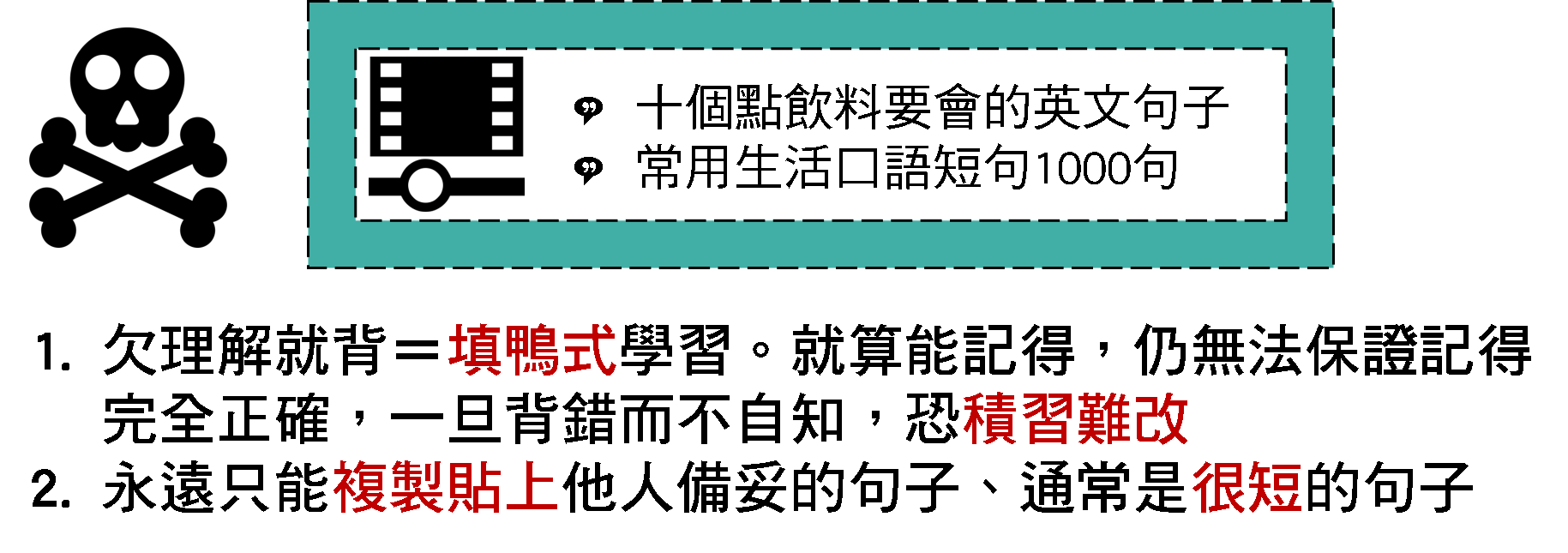 (一)學習英文口說能力的目的之一是與外界溝通,「關閉字幕重複美劇對白」等等常見的自學方法,往往與該目的相違背,不然就是學習者不懂得「趨吉避凶」--充分利用那些方法的優點同時避免那些方法造成的問題--因而成效不彰。