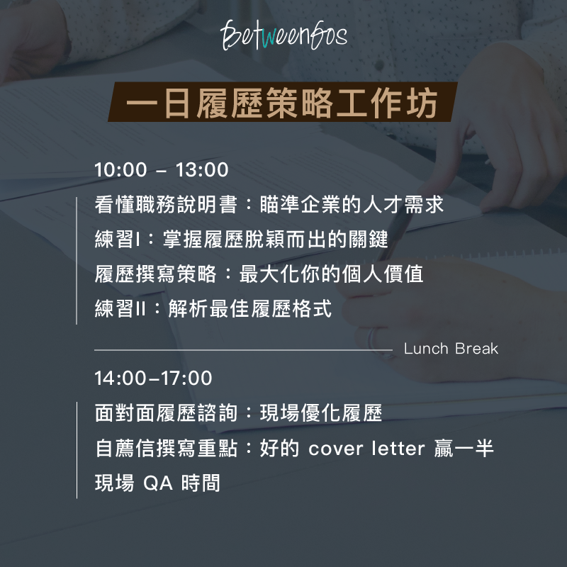 工作坊結束後,你將帶走一份命中率翻倍的履歷。