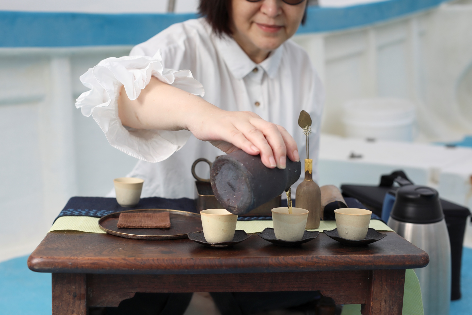 舢舨上的茶席 - 儘管是在略為搖晃的船上,這場茶席準備的道具可沒從簡,真的把茶藝館搬上了船