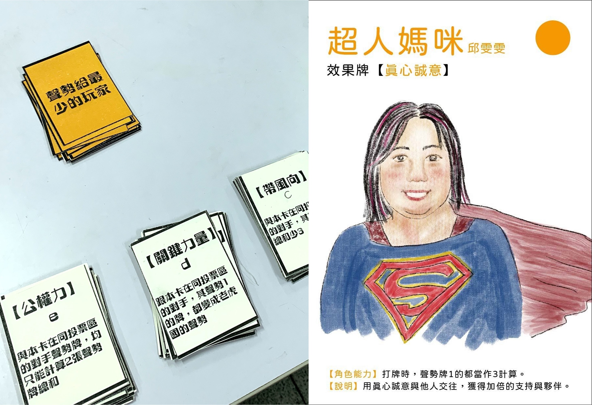 塭仔圳桌遊是一個陣營結盟類型的遊戲,以九宮格法決定最後獲勝的陣營,在遊戲中看見各方陣營相互合作與角力的過程。藉由桌遊的方式,讓社會大眾更加了解重劃案議題,同時也能認識塭仔圳的在地團體、勢力以及既有的文化地景、產業與社區。