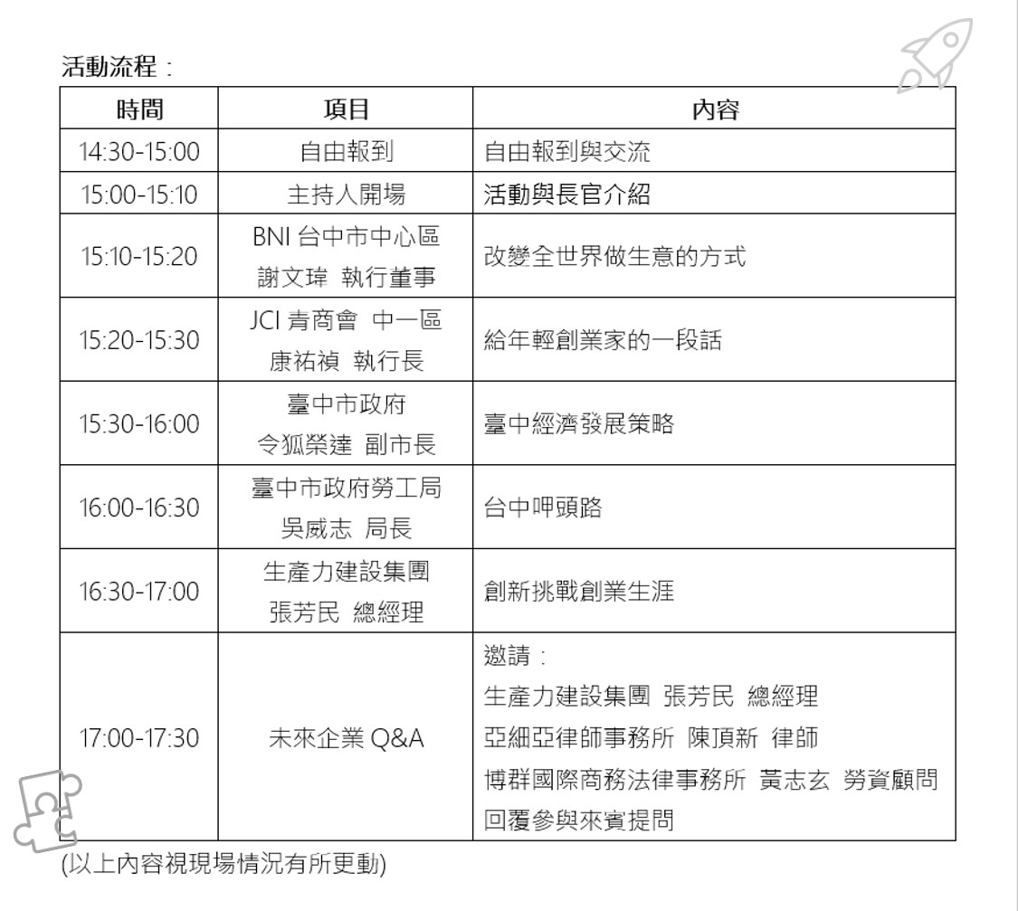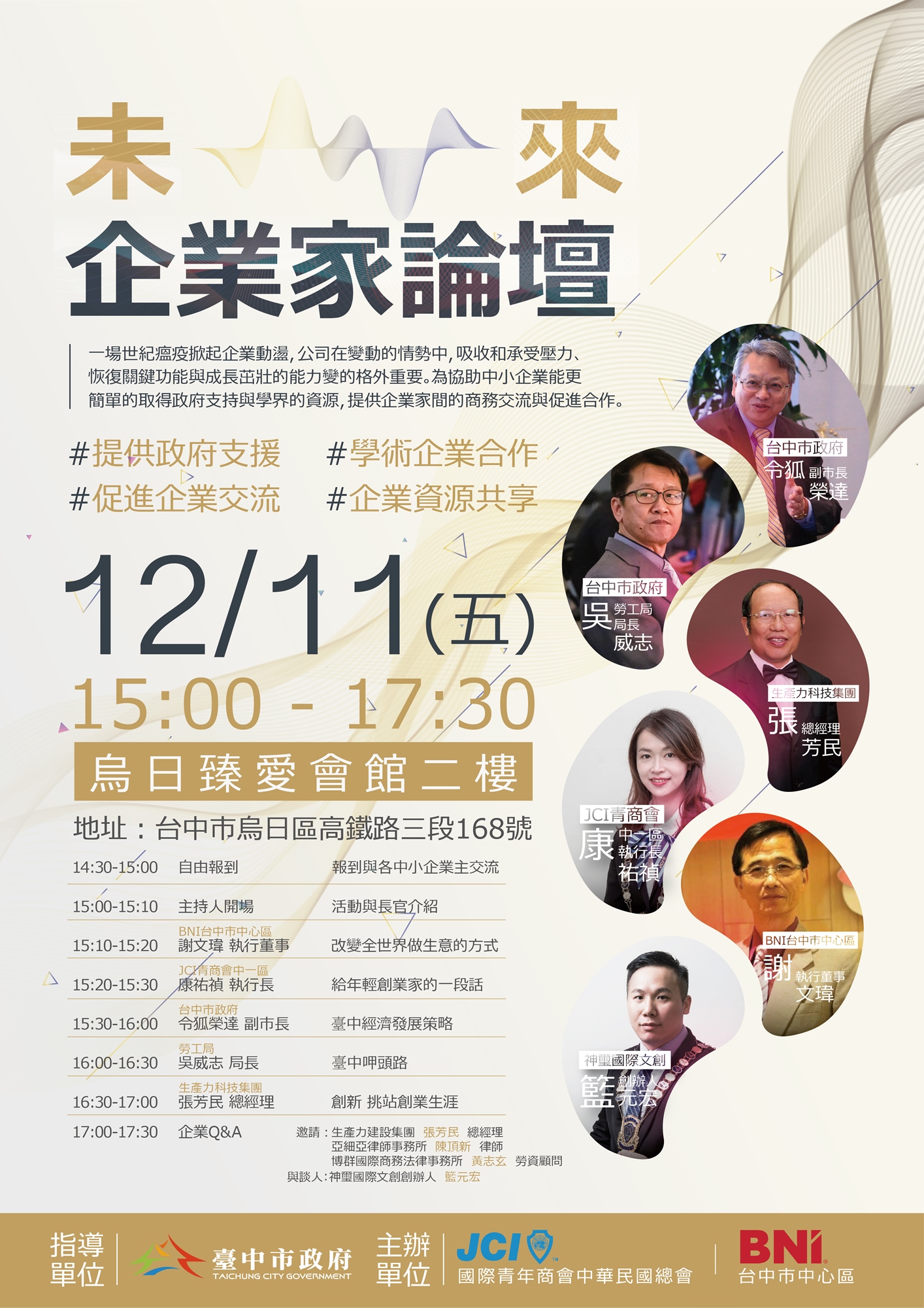 主辦單位:JCI國際青年商會;BNI台中市中心區