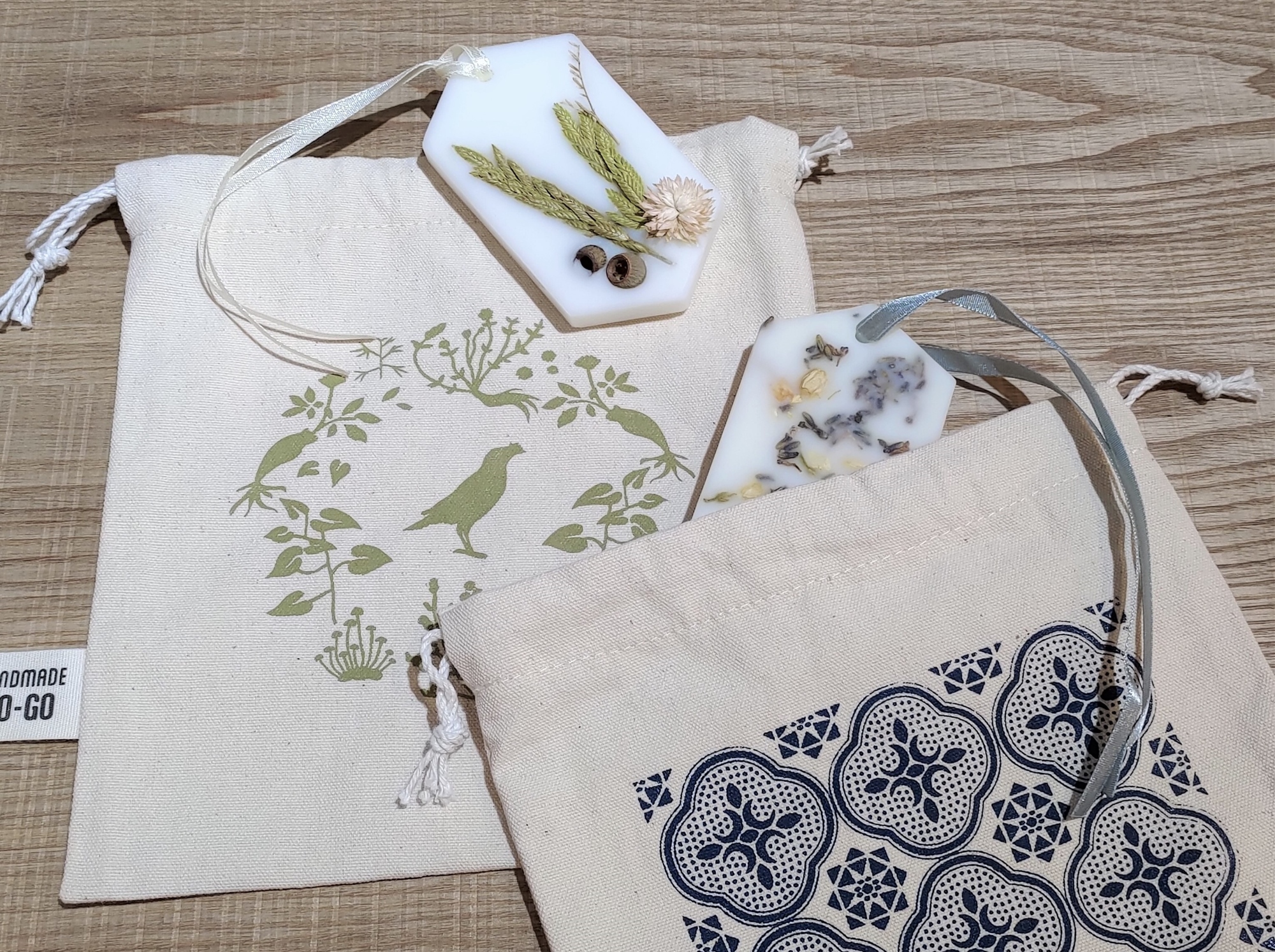 (除了絹印束口袋外,課程亦會另外提供小紙盒包裝)