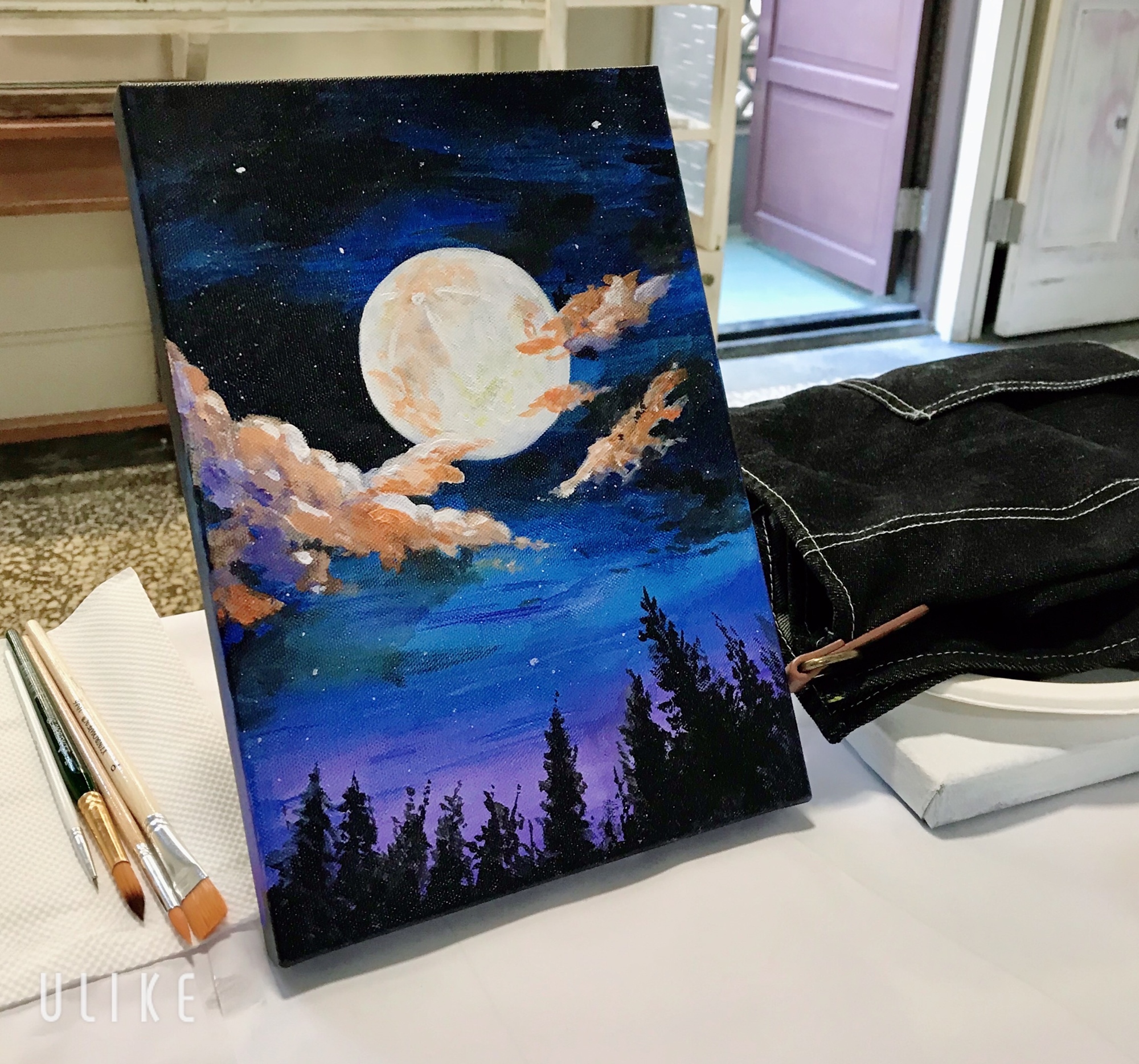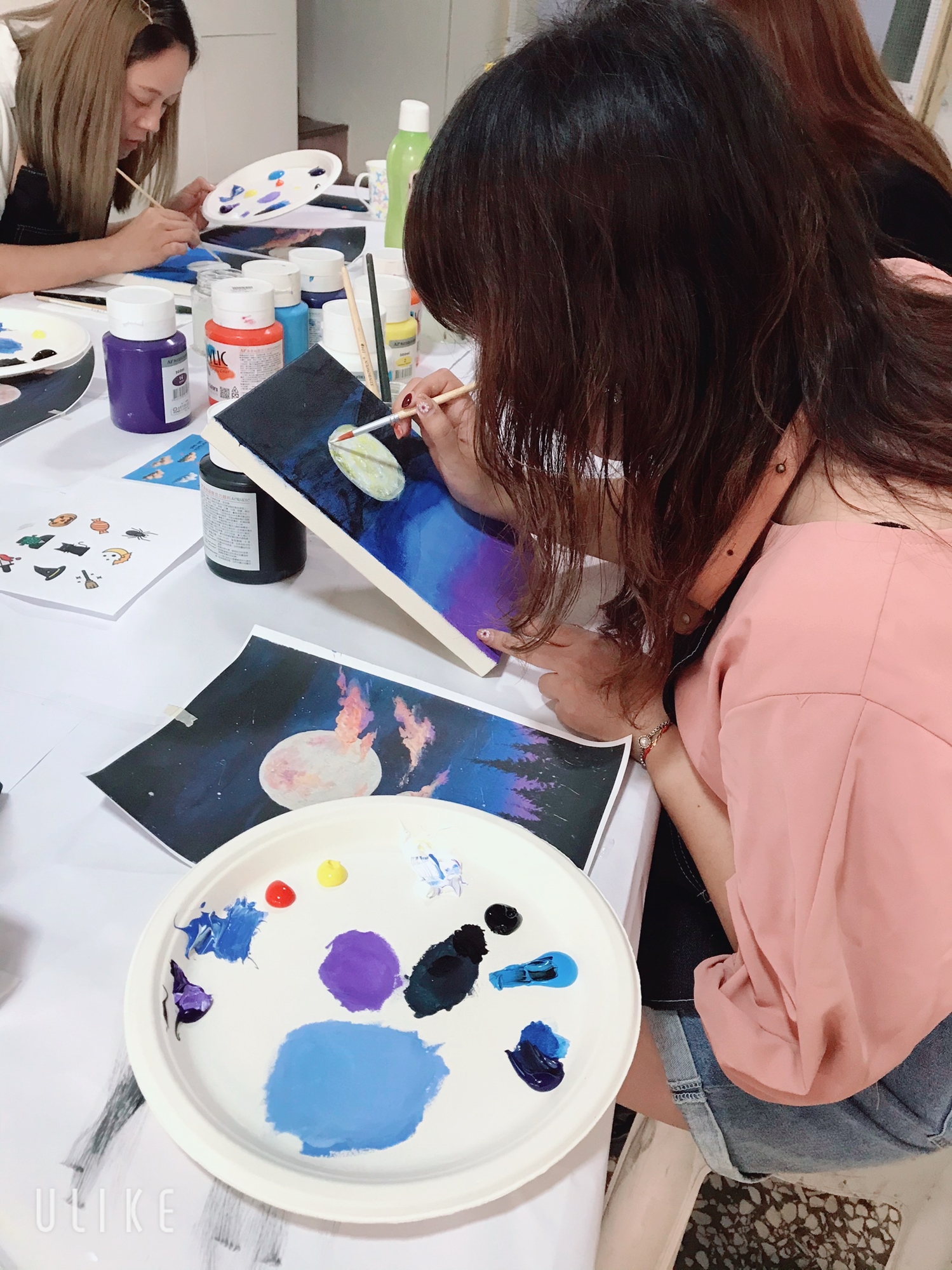 壓克力是一種非常快乾、可持續堆疊做出油畫一般質感的顏料,是當代許多藝術家創作的媒材,本次課程老師會帶領學員掌握混色技巧,彩繪出美麗的星空和小王子和蝴蝶剪影。