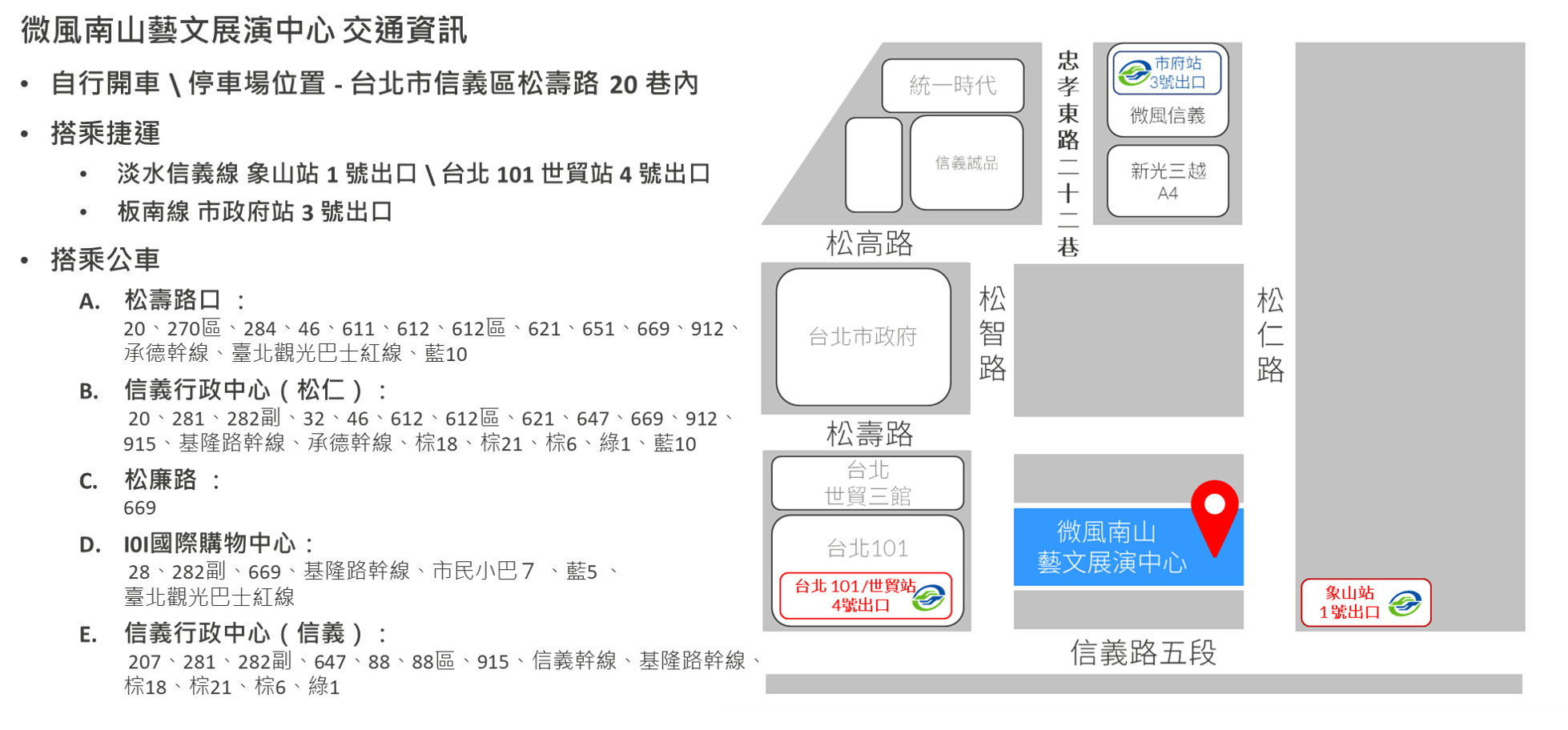 ● 交通資訊 微風南山藝文展演中心(3樓藝文展演廳)