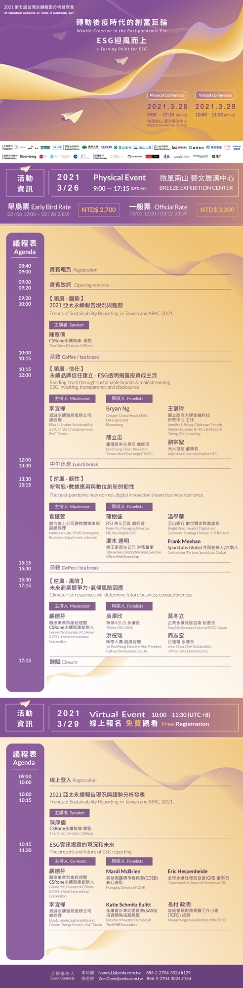 5. 報名購票即贈《2021 臺灣暨亞太永續報告現況與趨勢》數位本1份,於現場報名入場時發放*