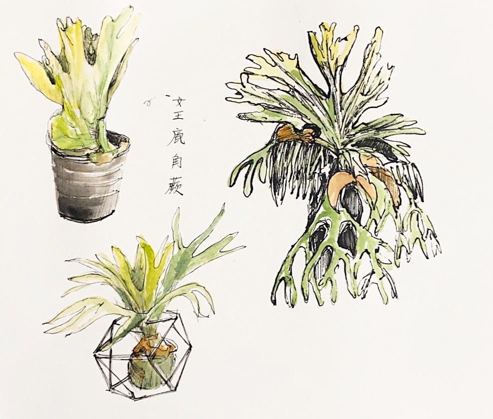 鹿角蕨是擁有如鹿角般葉片的迷人植物,插畫師將帶領學習運用速寫技巧描繪生活中的植栽,以細膩的觀察補捉植物葉片的動人線條,從速寫到上色,手繪紀錄下自然的點滴。