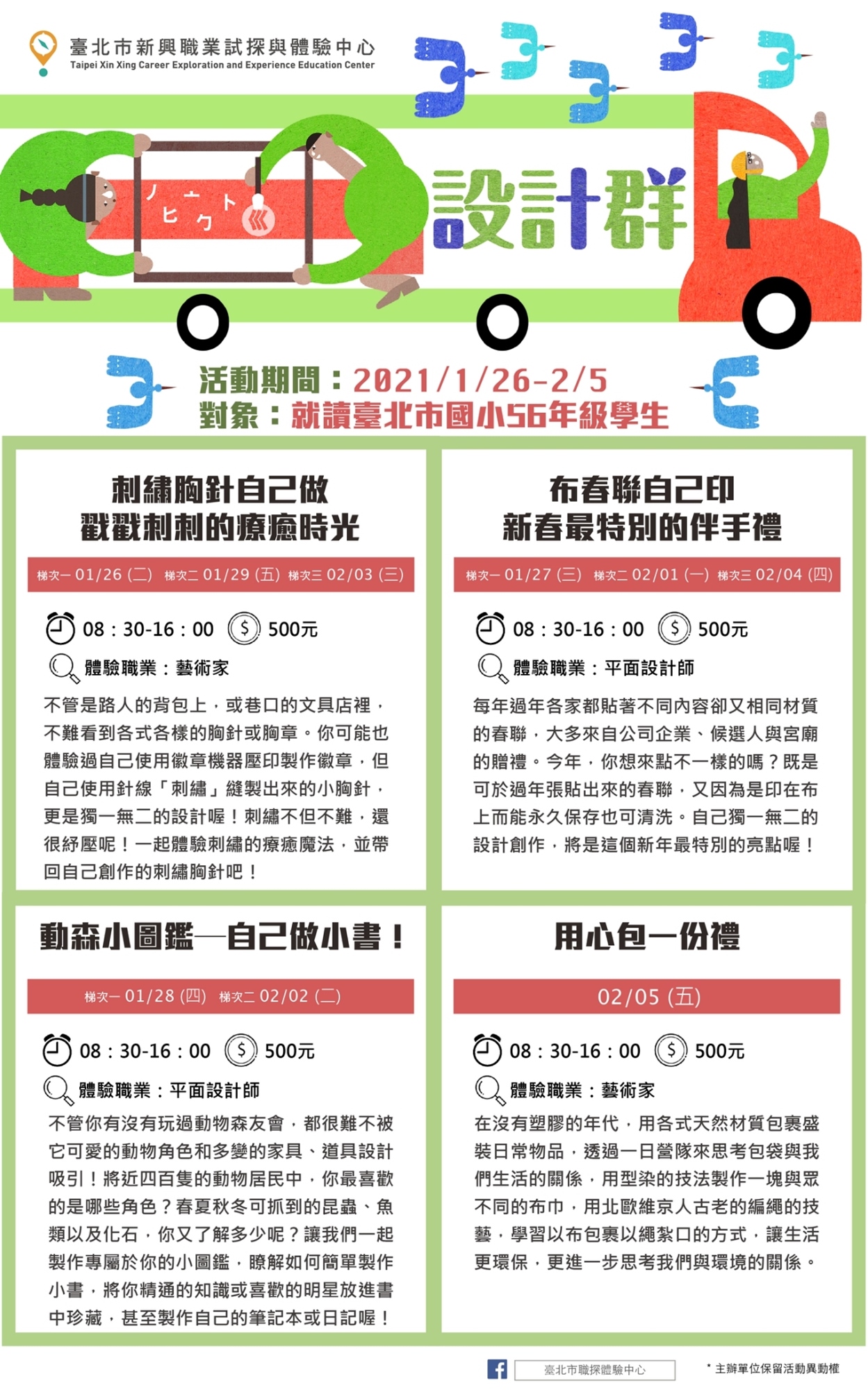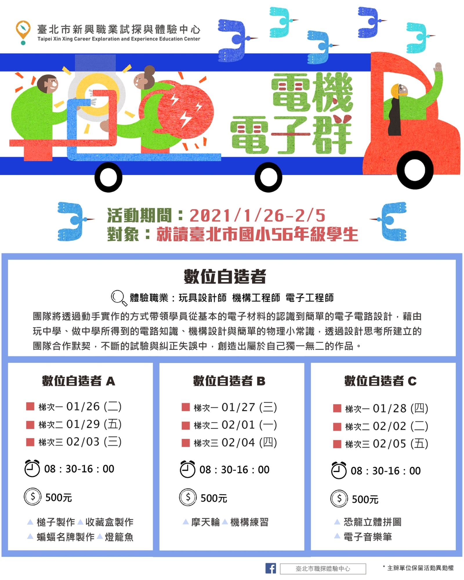 - 營隊照片於活動結束一週後,將公告於【FB粉專-臺北市職探體驗中心】,請按讚追蹤我們。