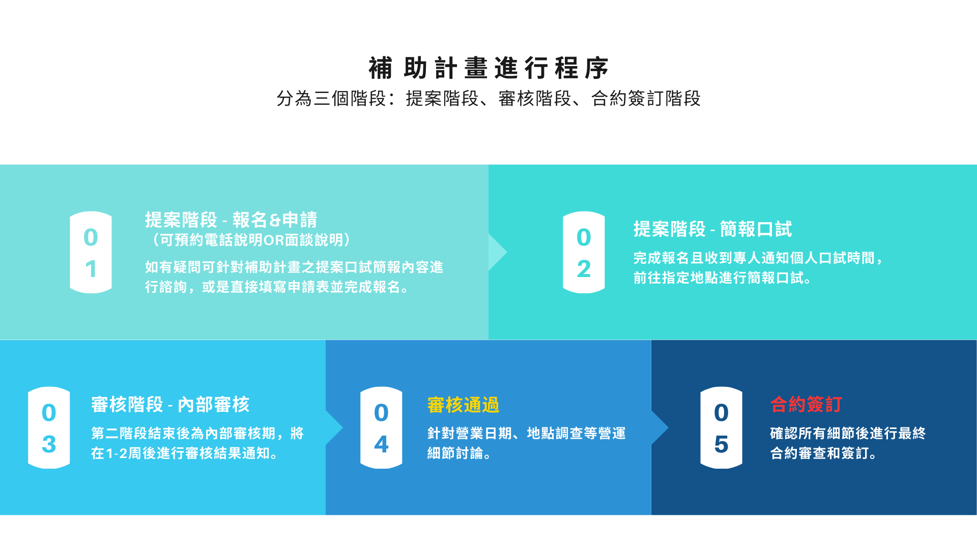 「 補 助 計 畫 加 速 起 步 速 度 」