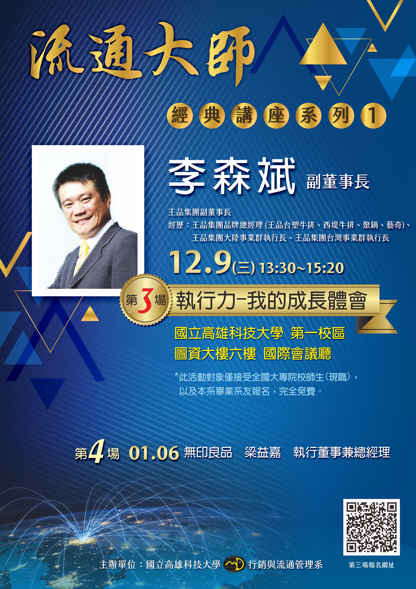 「流通大師」經典講座系列,繼第一場流通業教父-徐重仁董事長及第二場美廉社邱光隆總經理的經驗傳承,引起熱烈迴響後,緊接著第三場講座的報名要開始囉!