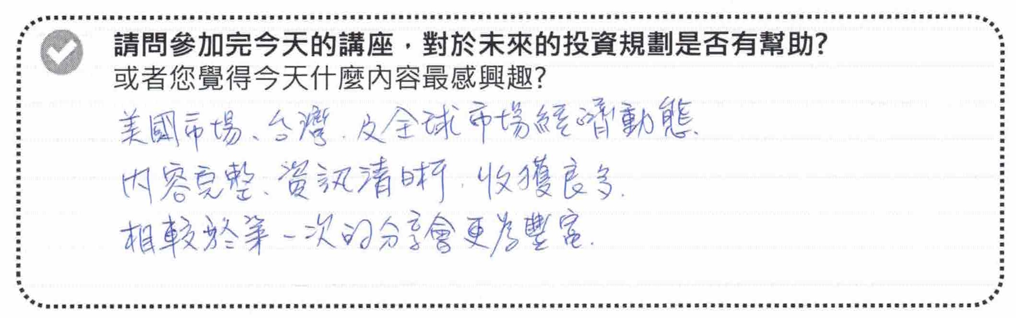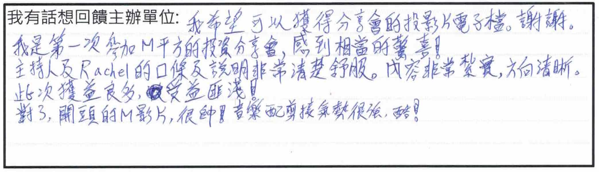 ▌過去分享會親筆回饋及現場